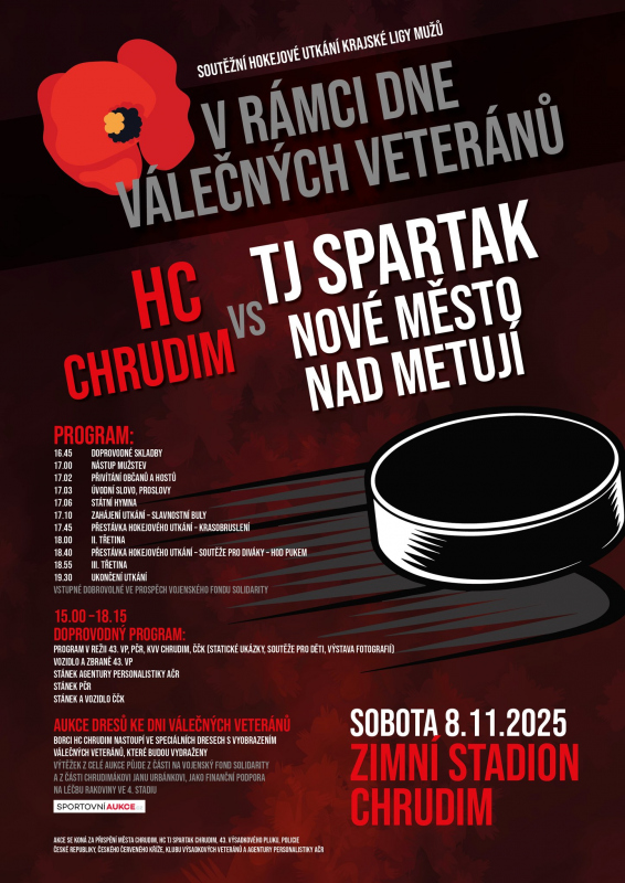 Hokejový zápas v rámci Dne válečných veteránů (HC Chrudim vs. TJ Spartak Nové Město nad Metují)
