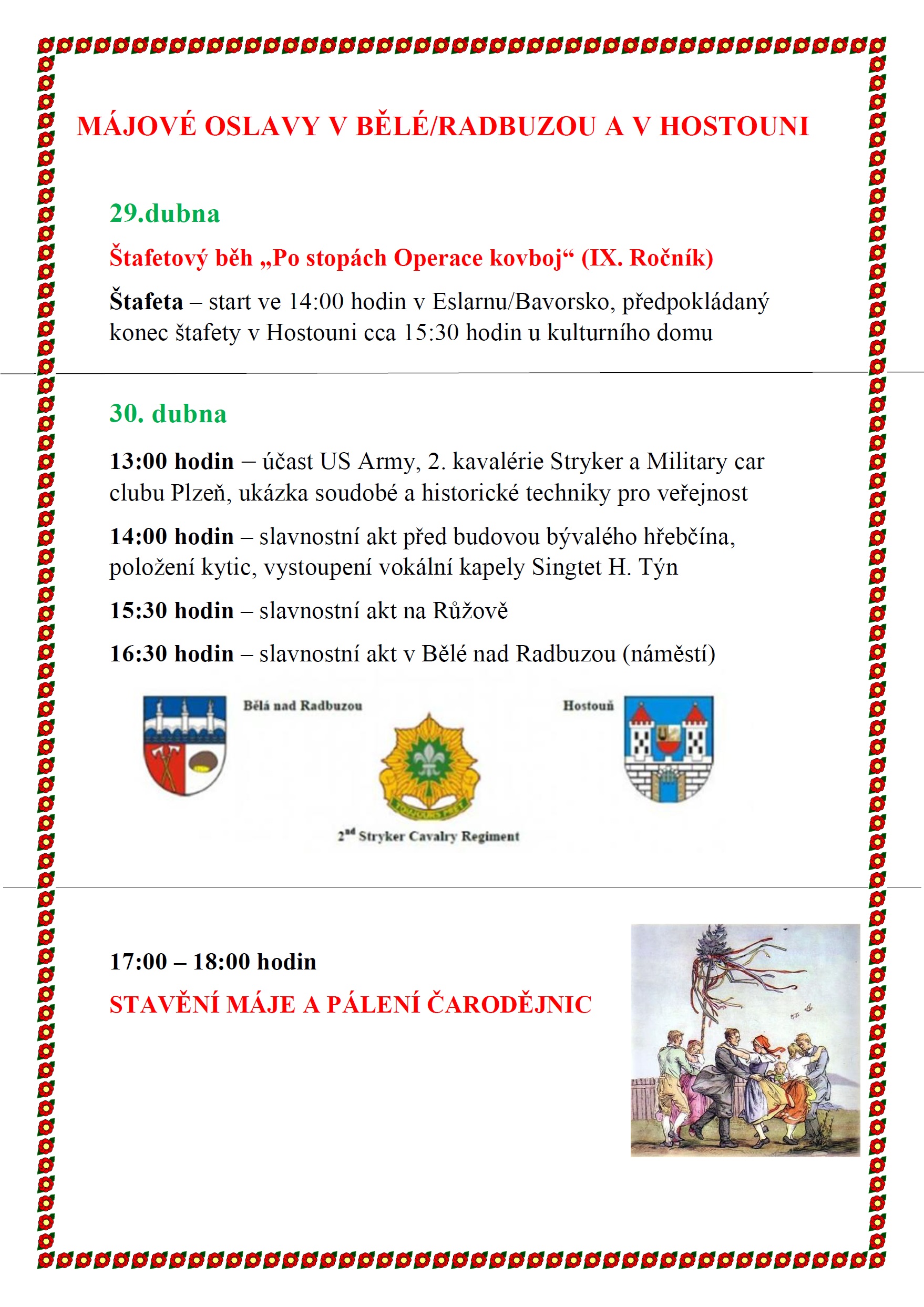 Májové oslavy v Bělé nad Radbuzou a v Hostouni