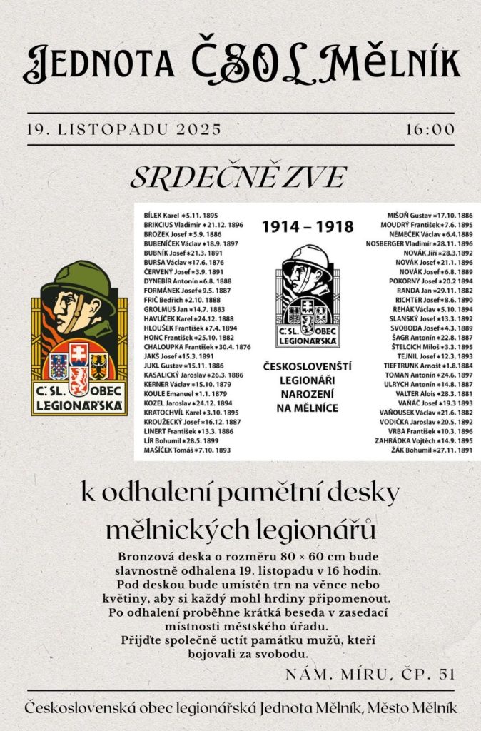 Odhalení pamětní desky mělnických legionářů