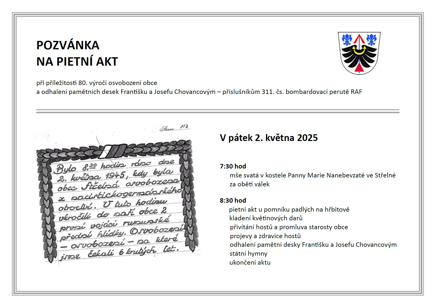 Pietní akt při příležitosti 80. výročí osvobození obce Střelné a odhalení pamětních desek Františku a Josefu Chovancovým
