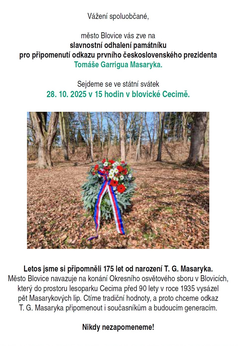Slavnostní odhalení památníku pro připomenutí odkazu prvního čs. prezidenta T. G. Masaryka