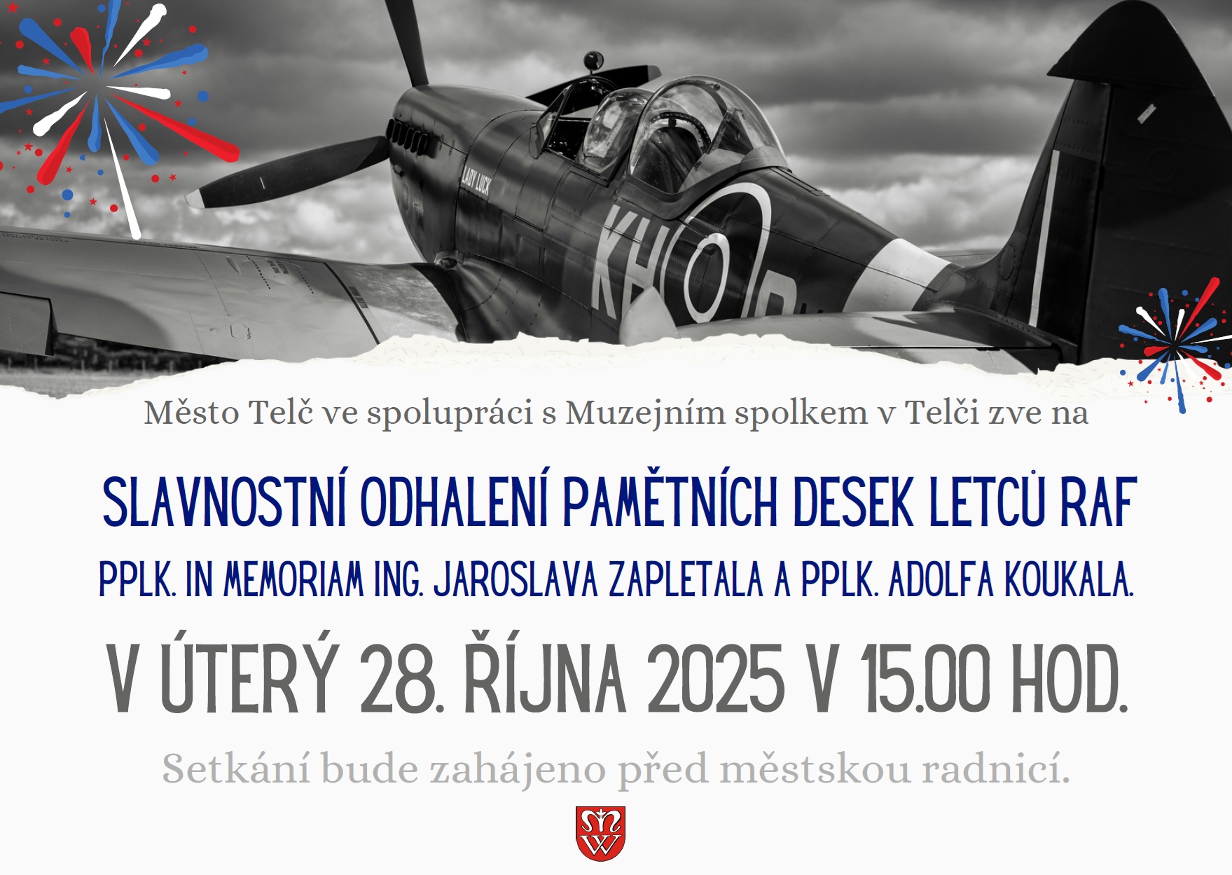 Slavnostní odhalení pamětních desek letců RAF Jaroslava Zapletala a Adolfa Koukala v Telči