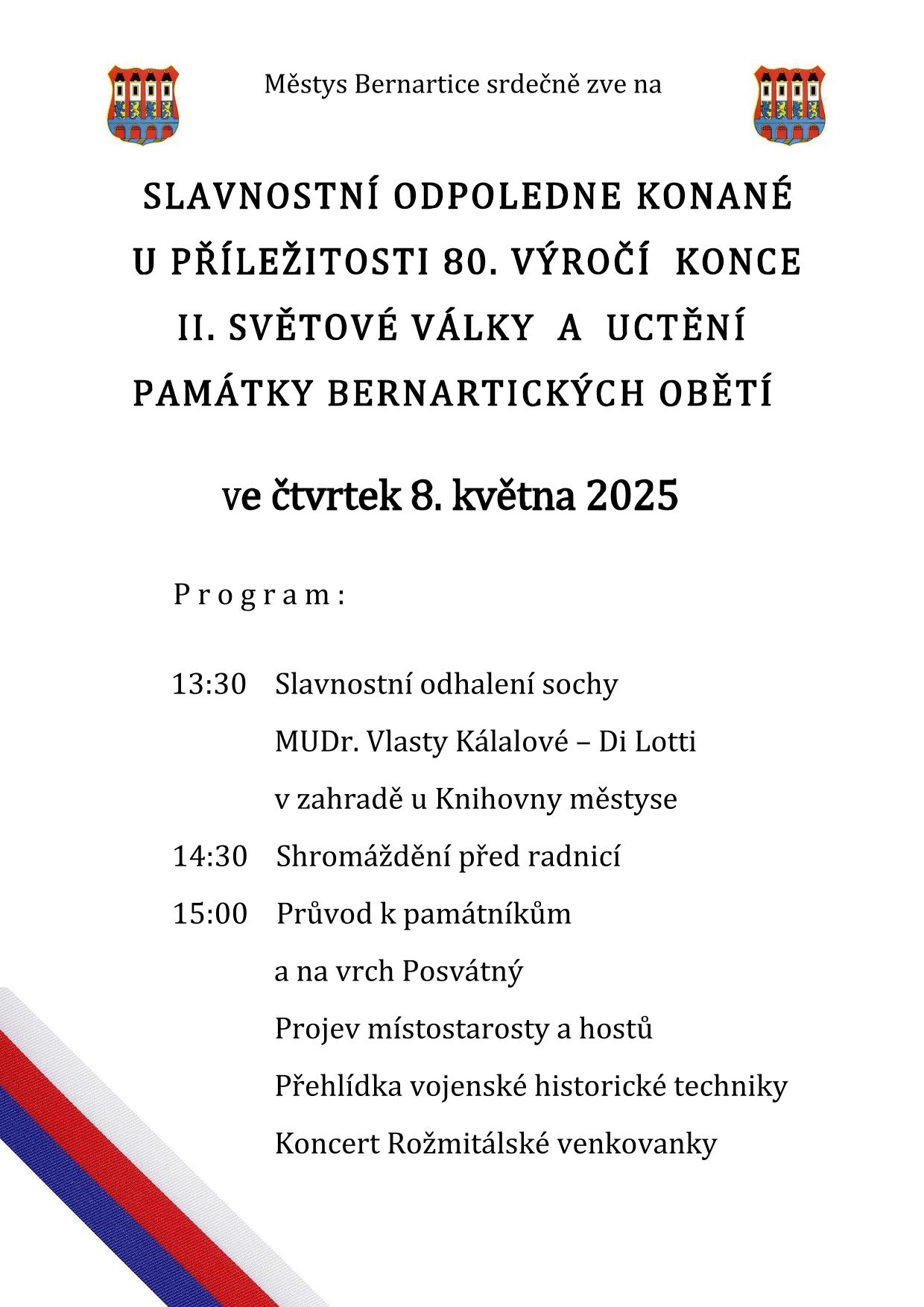 Slavnostní odpoledne k 80. výročí konce II. sv. války a uctění památky bernartických obětí