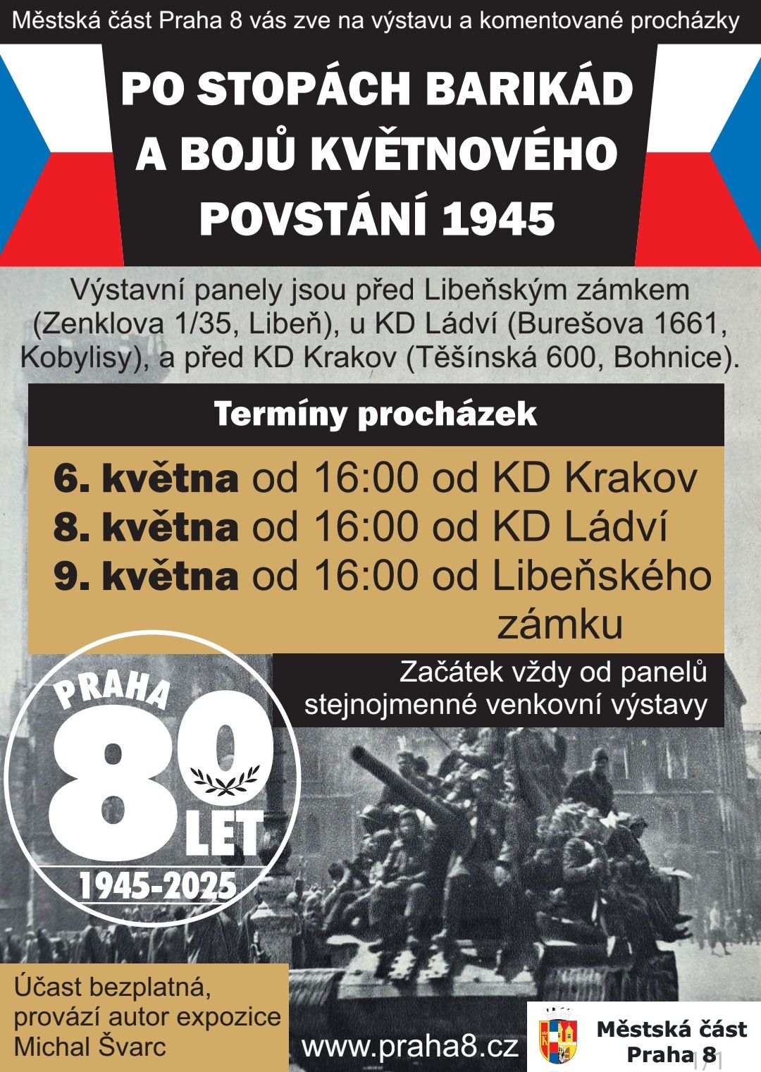 Výstava a Komentované procházky „Po stopách barikád a bojů květnového povstání 1945“ (Praha 8)