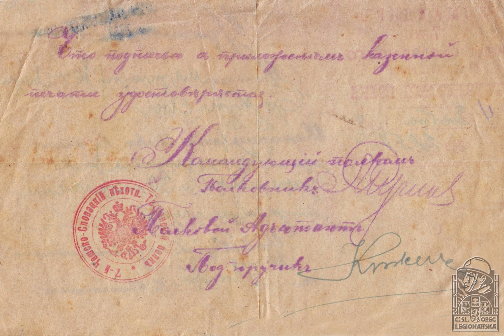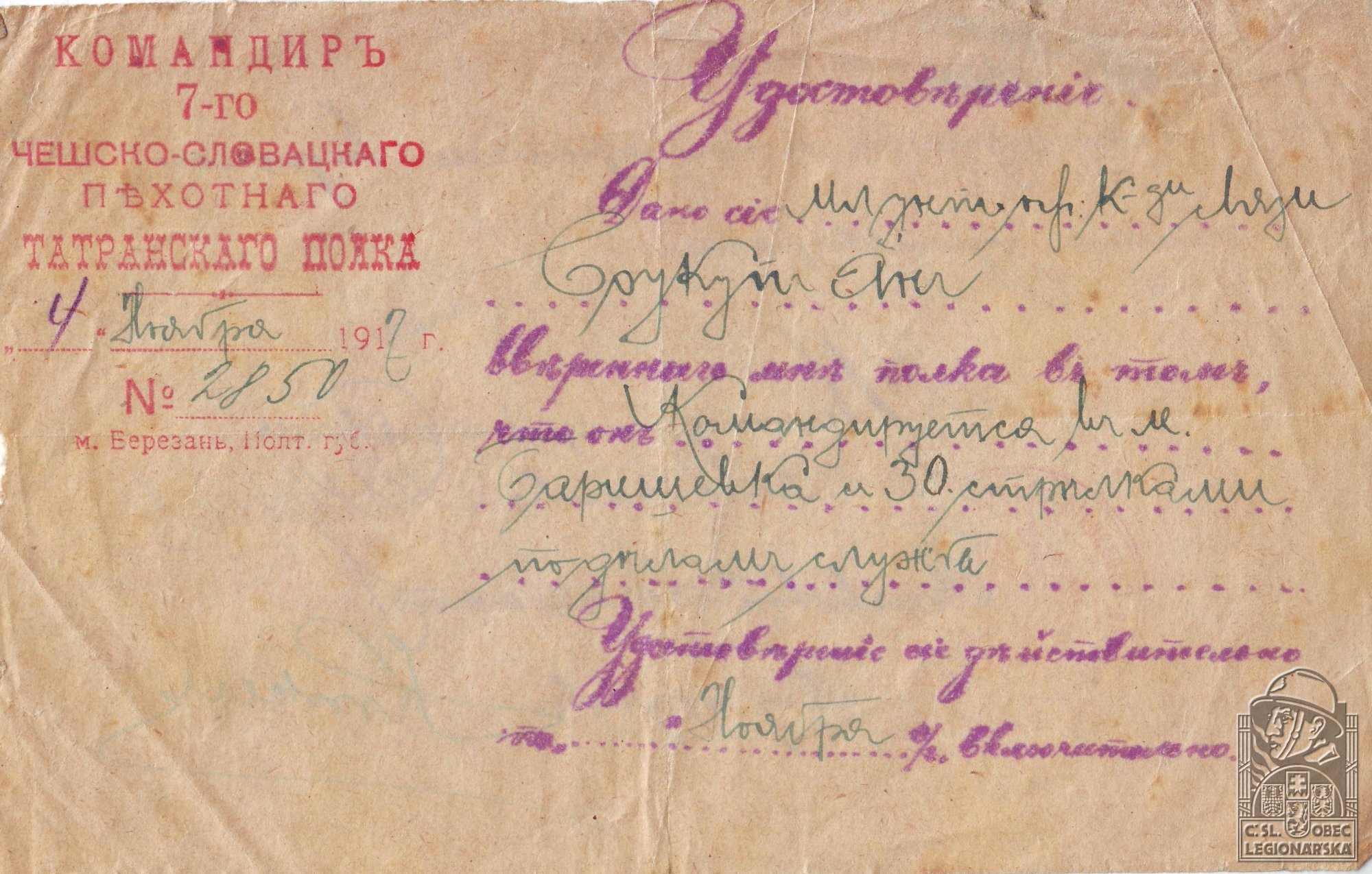 dokumenty spojené s osobou legionáře