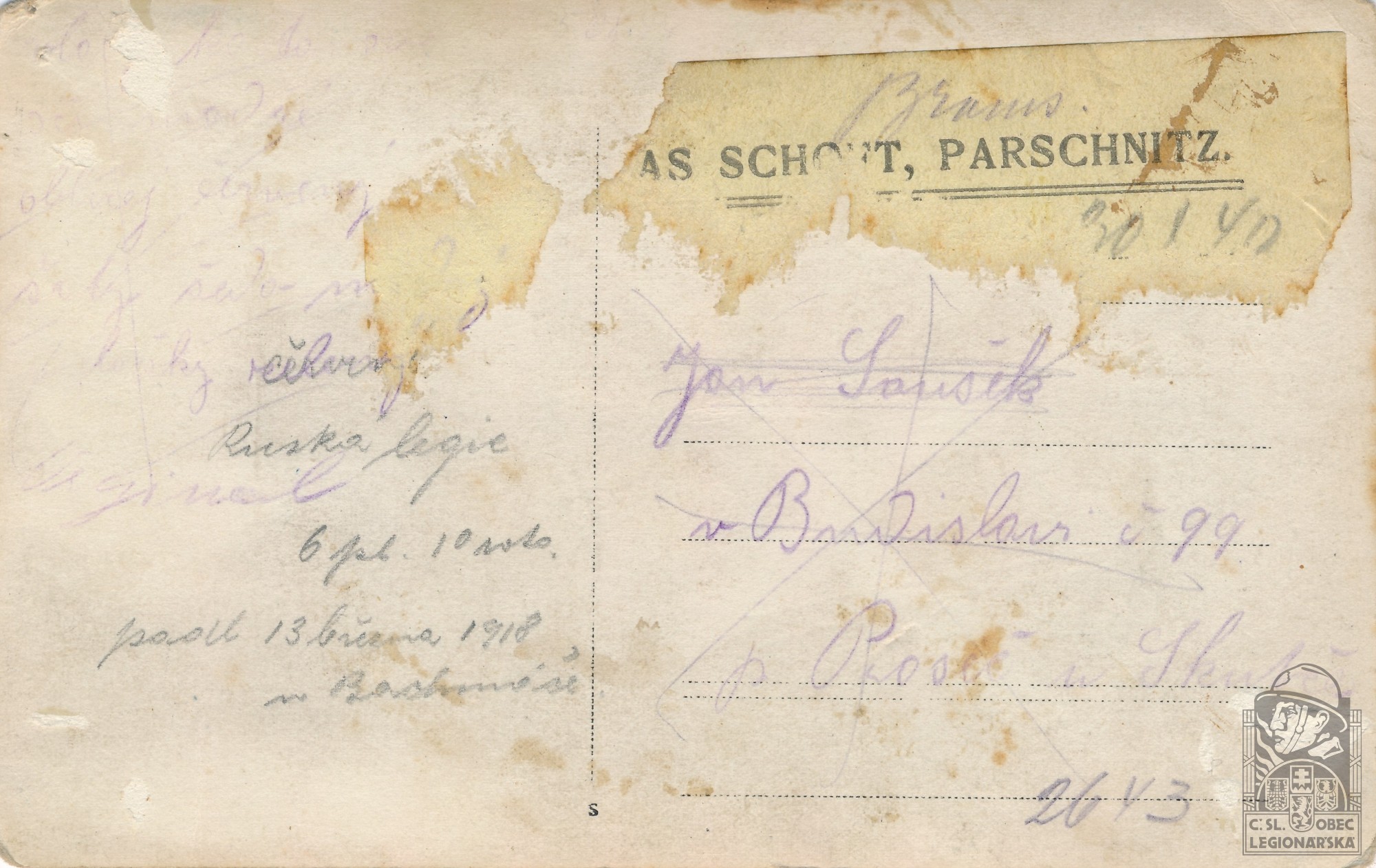 Jednotka v době zařazení:6.stř.pl. ( Čs. legie v Rusku )