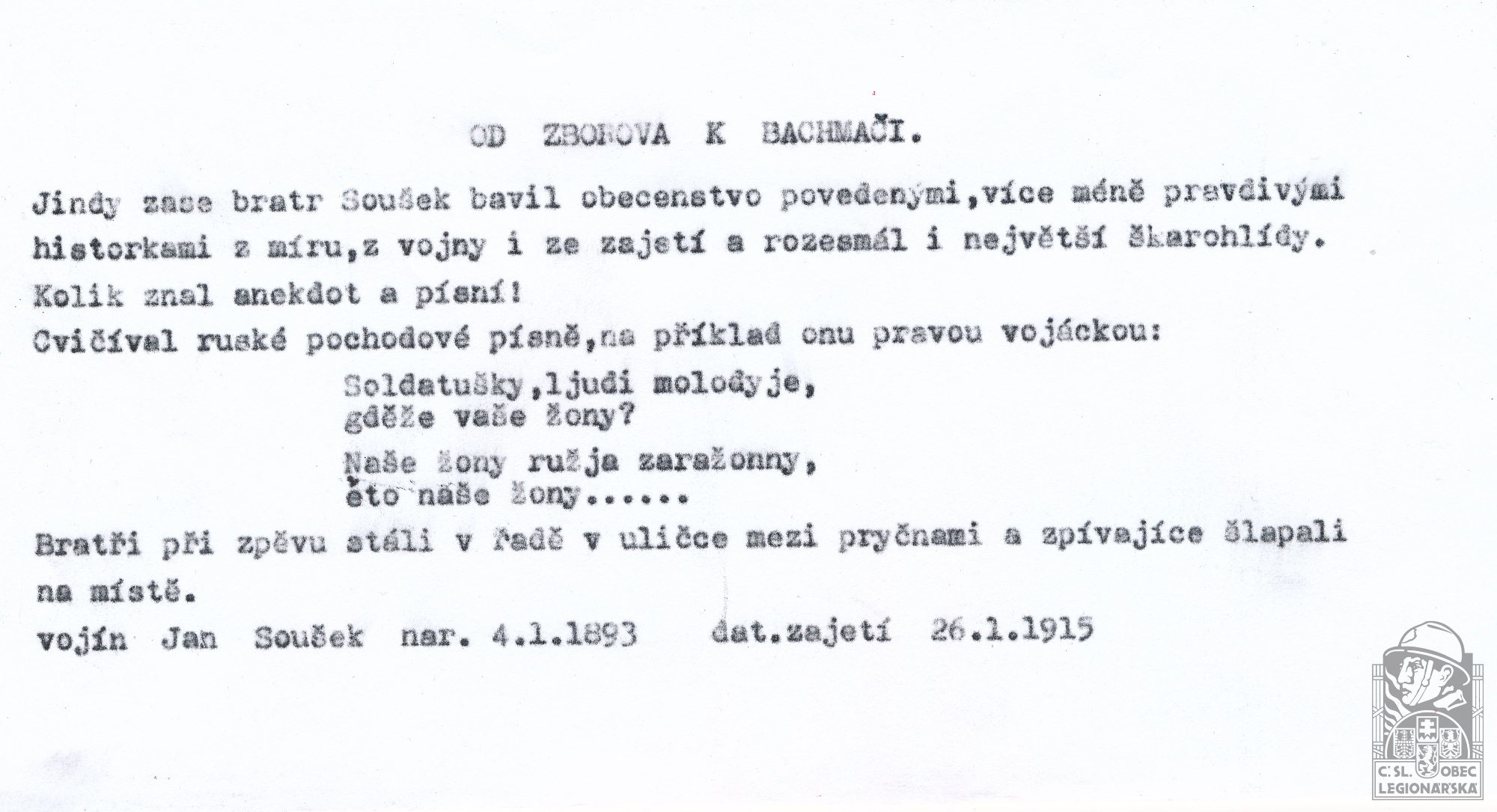 Zdroj informací: legionářský poslužný spis