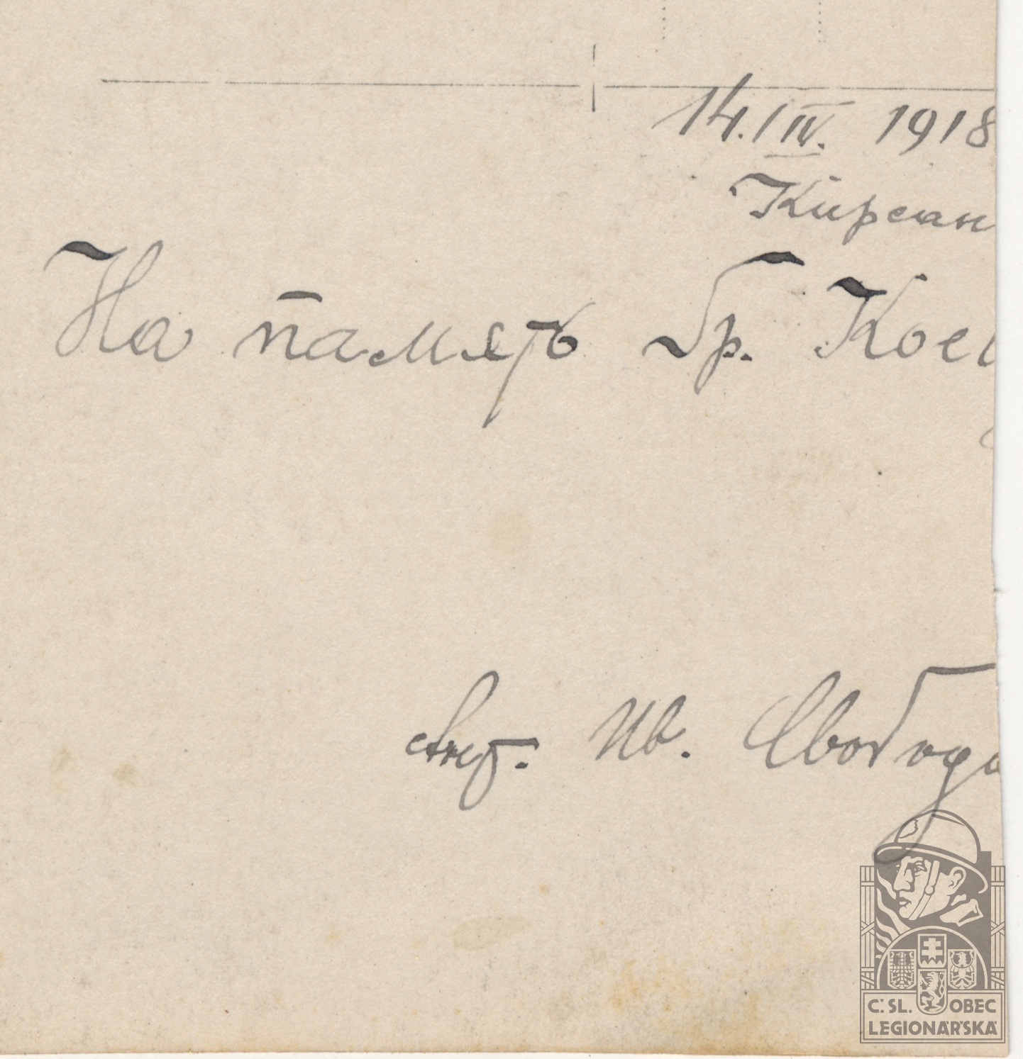 Jednotka v době zařazení:2.stř.pl. ( Čs. legie v Rusku )