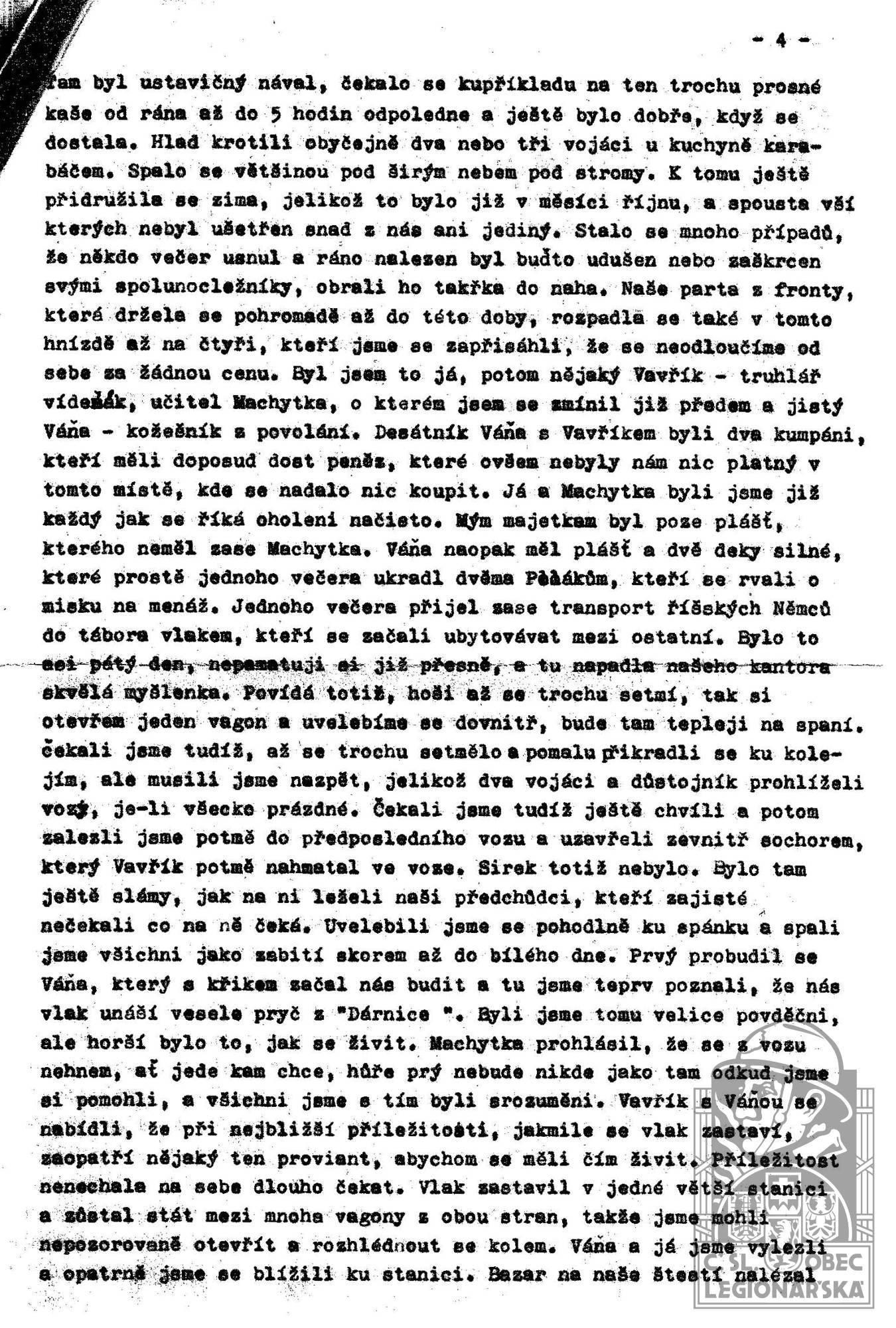 Zdroj informací: legionářský poslužný spis osobní karta legionáře