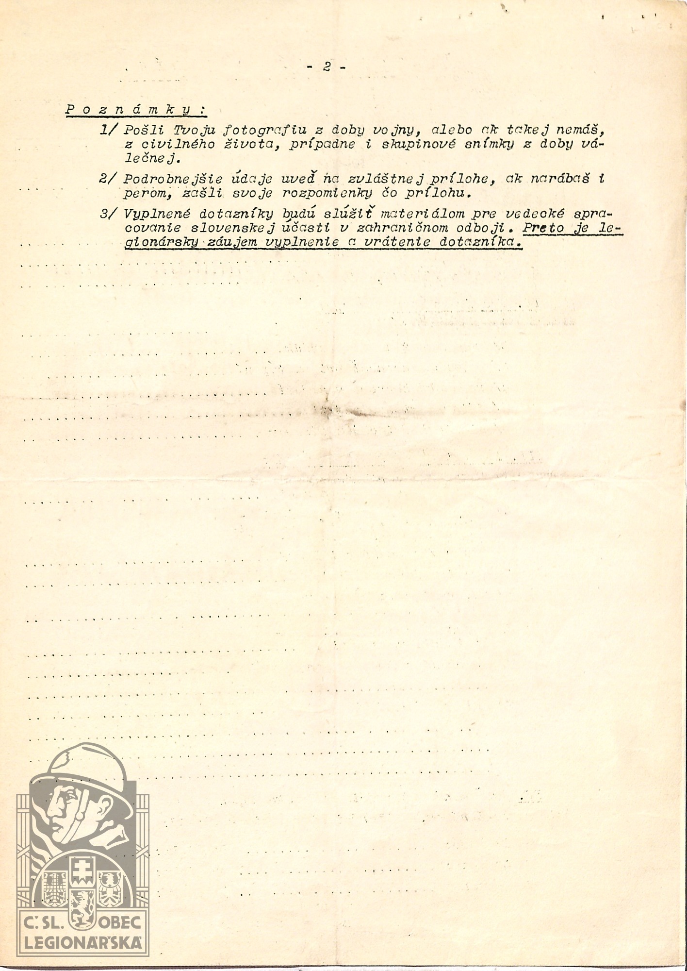 dokumenty spojené s osobou legionáře