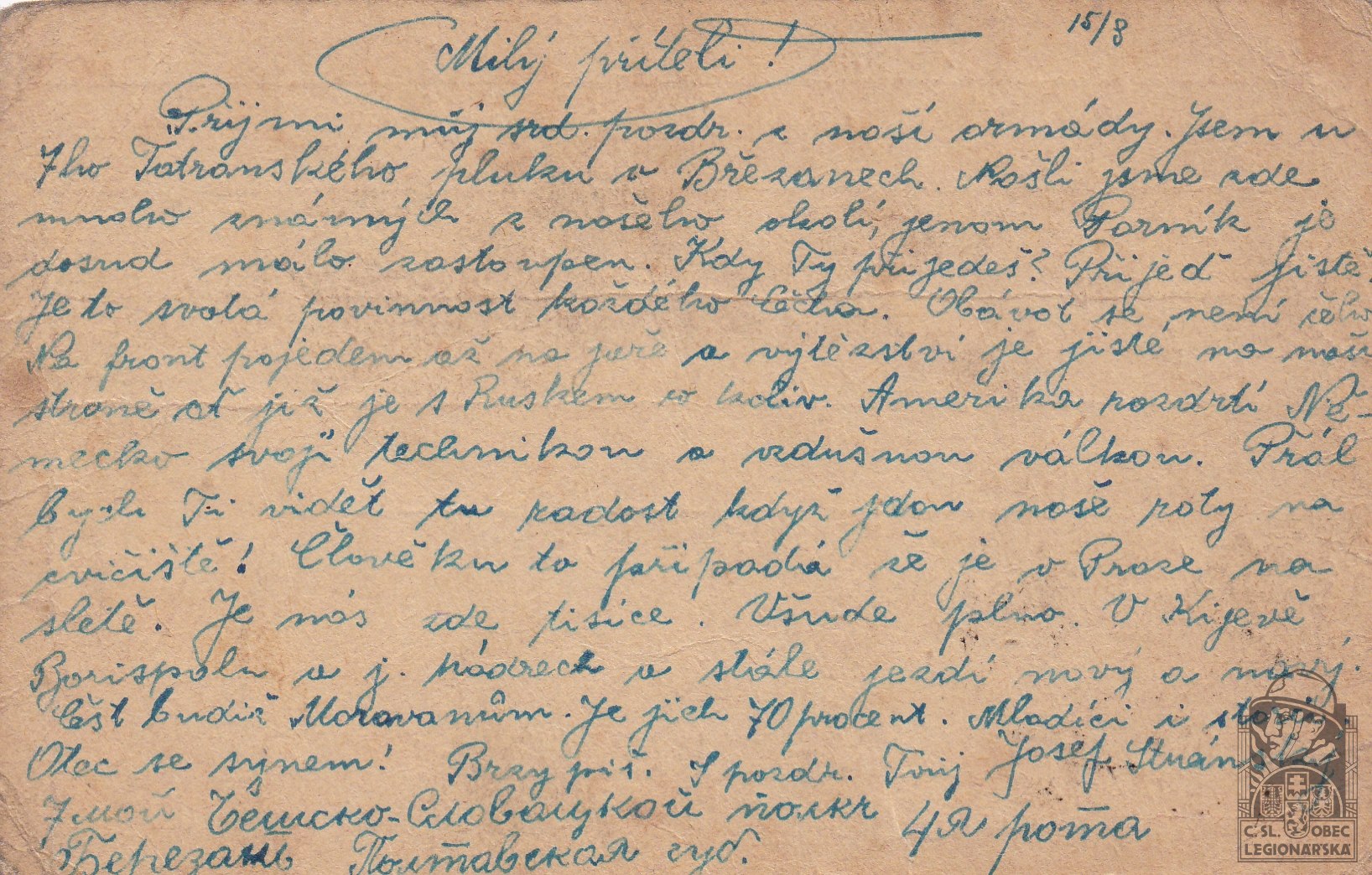 Poslední útvar v legiích:7.stř.pl.