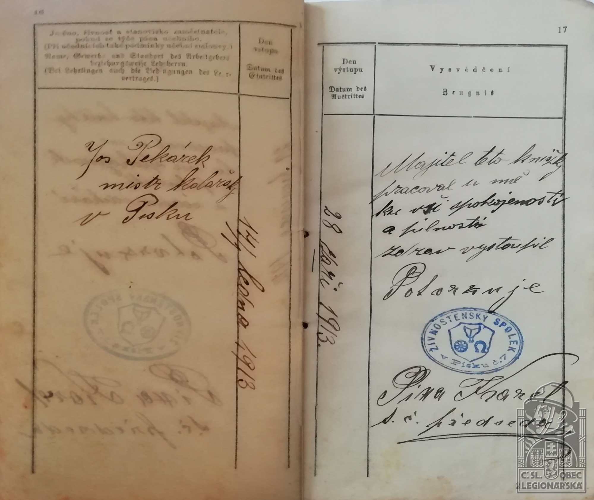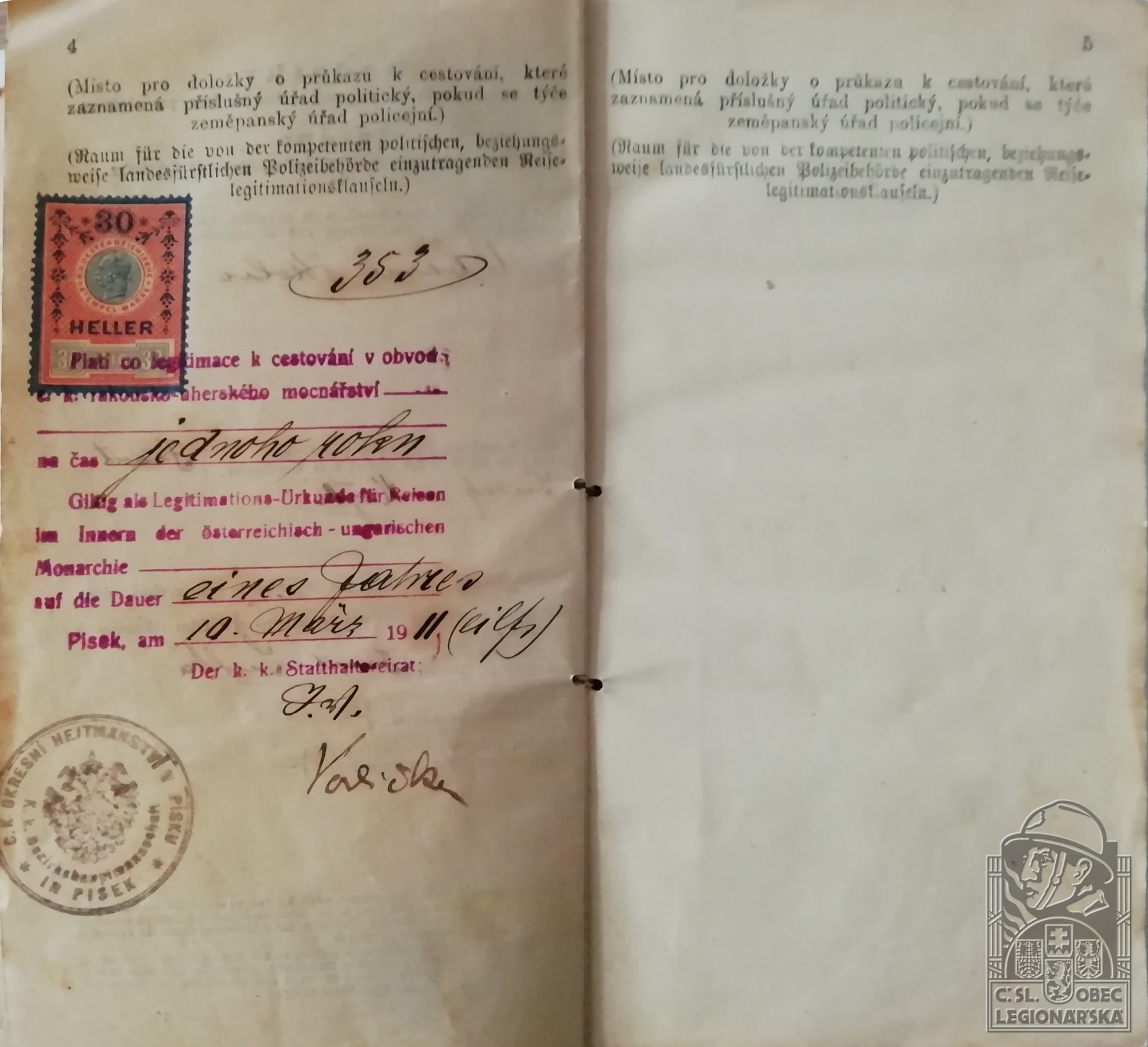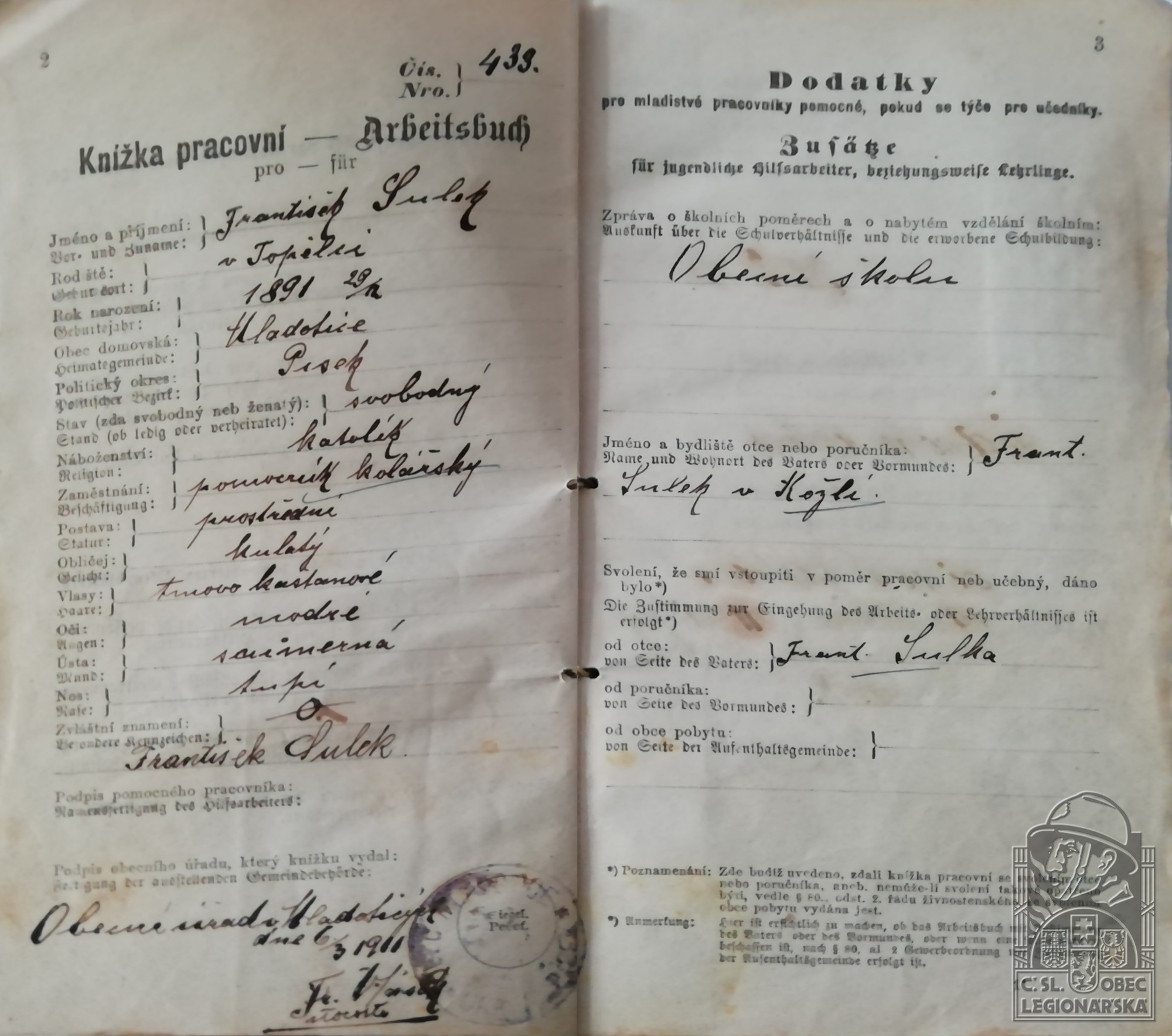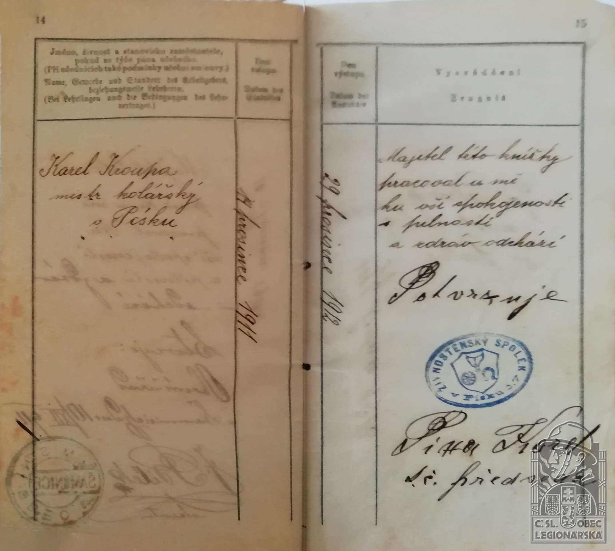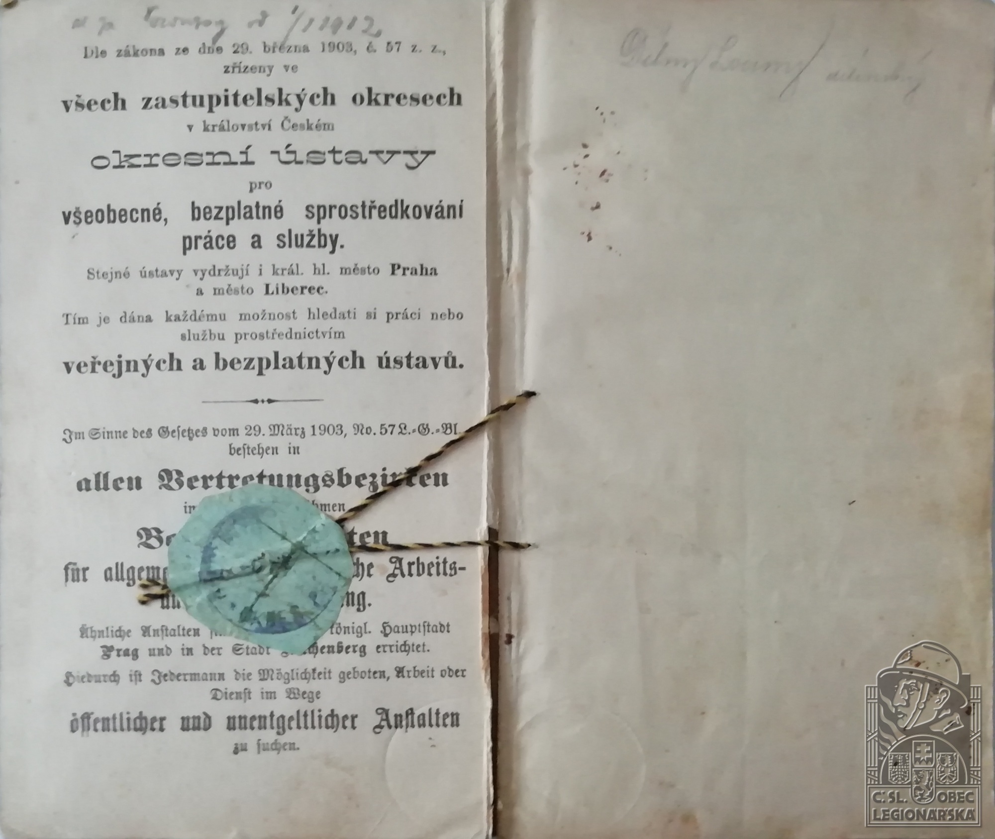 Zdroj informací: legionářský poslužný spis osobní karta legionáře