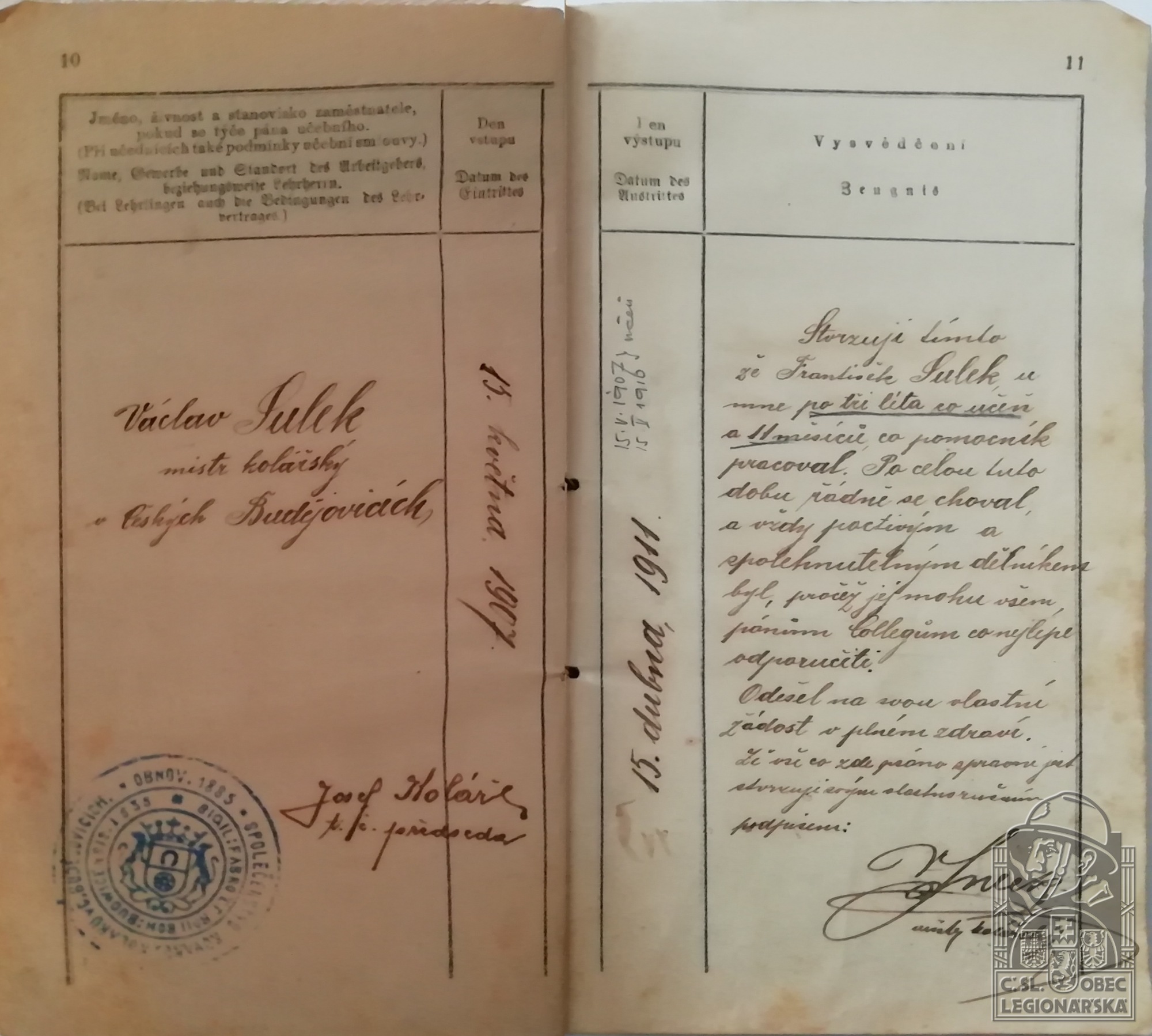 Prezenční služba u rakousko-uherského útvaru:11.p.pl.