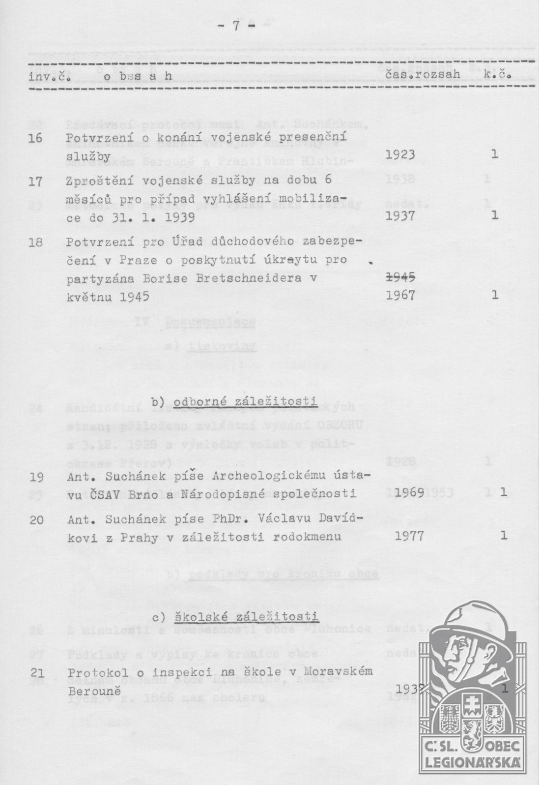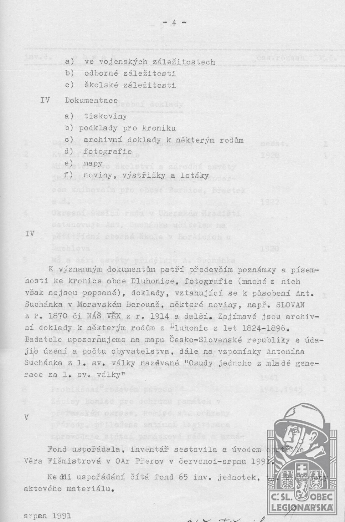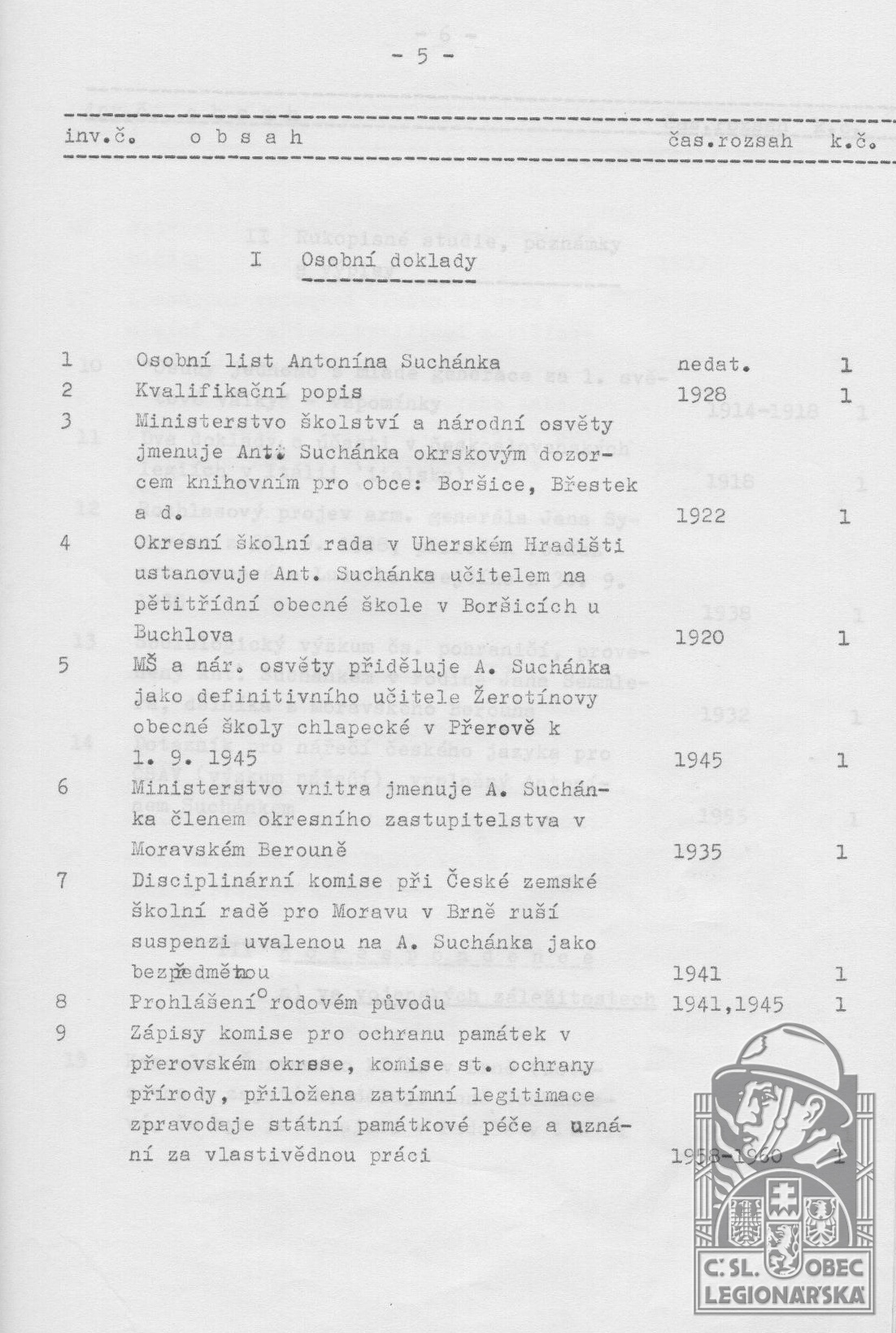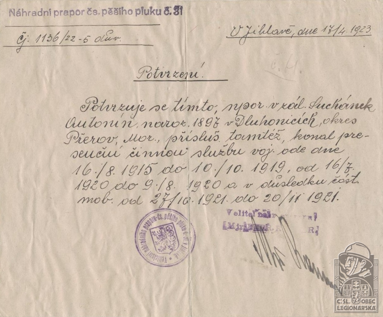 dokumenty spojené s osobou legionáře