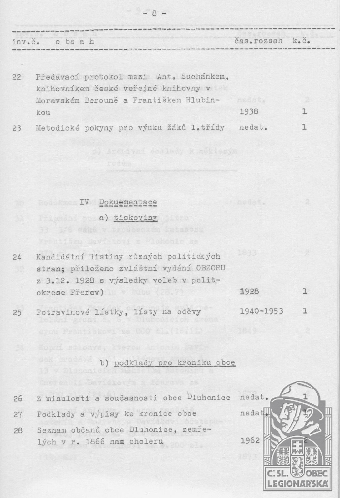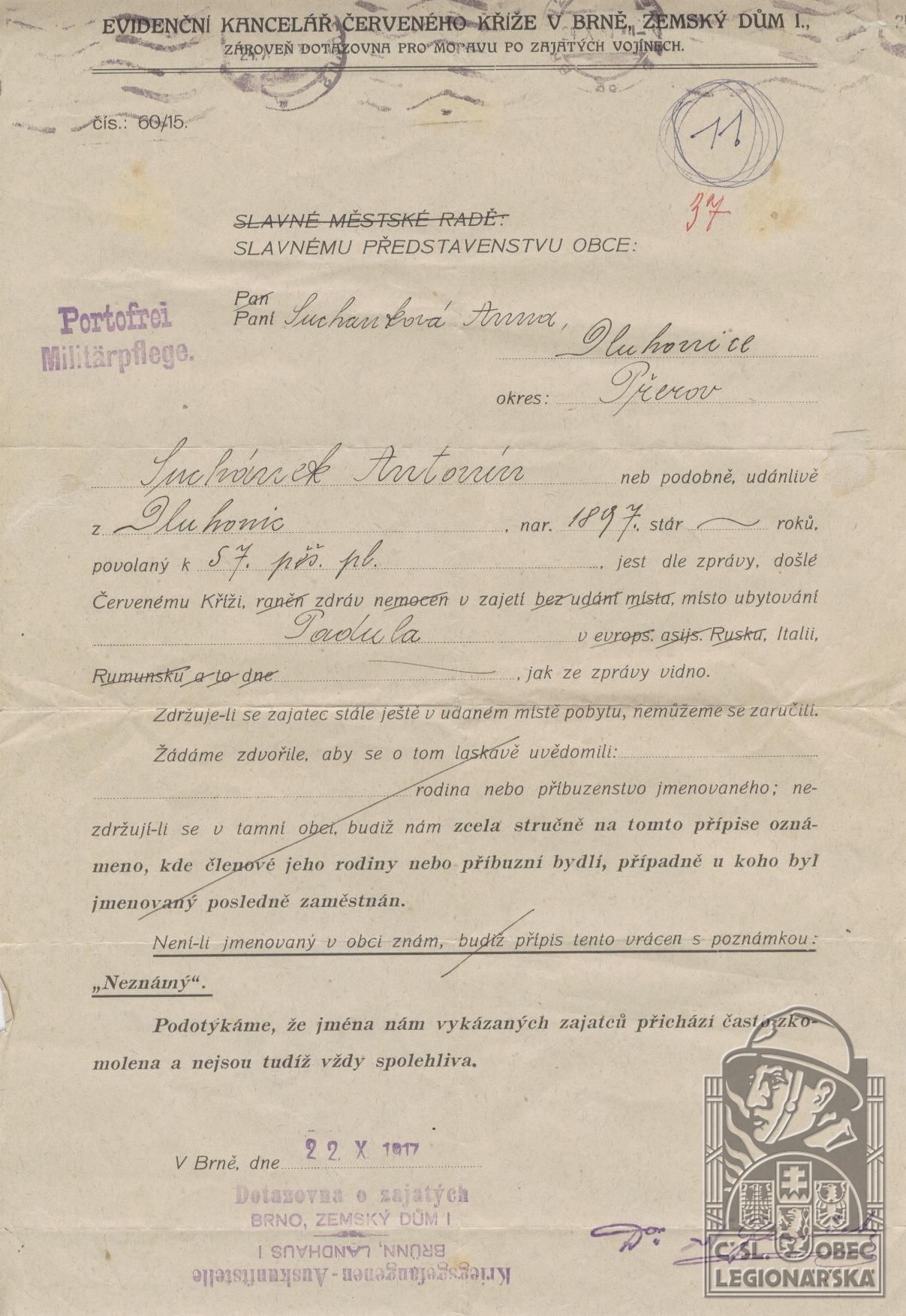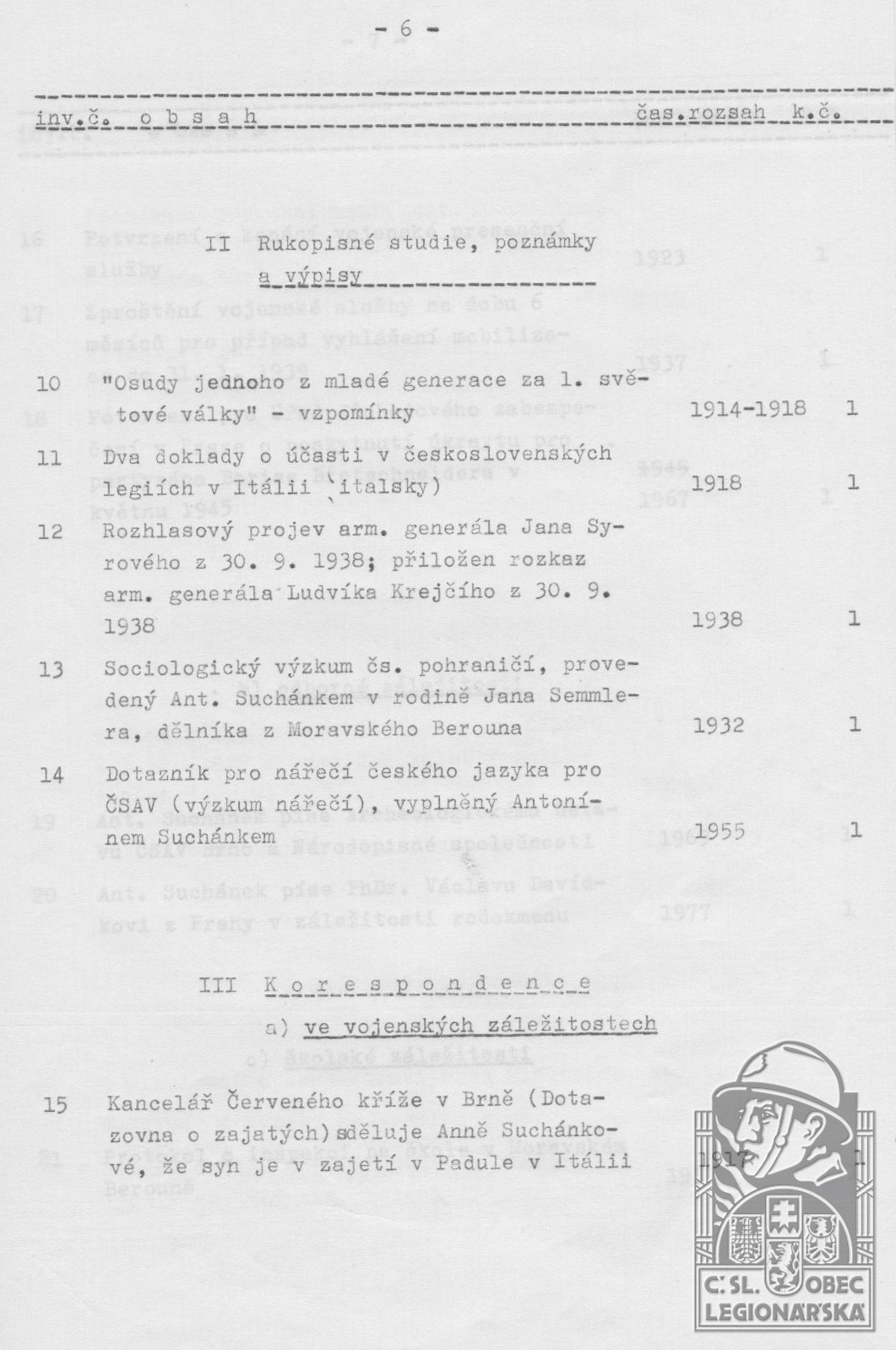 dokumenty spojené s osobou legionáře