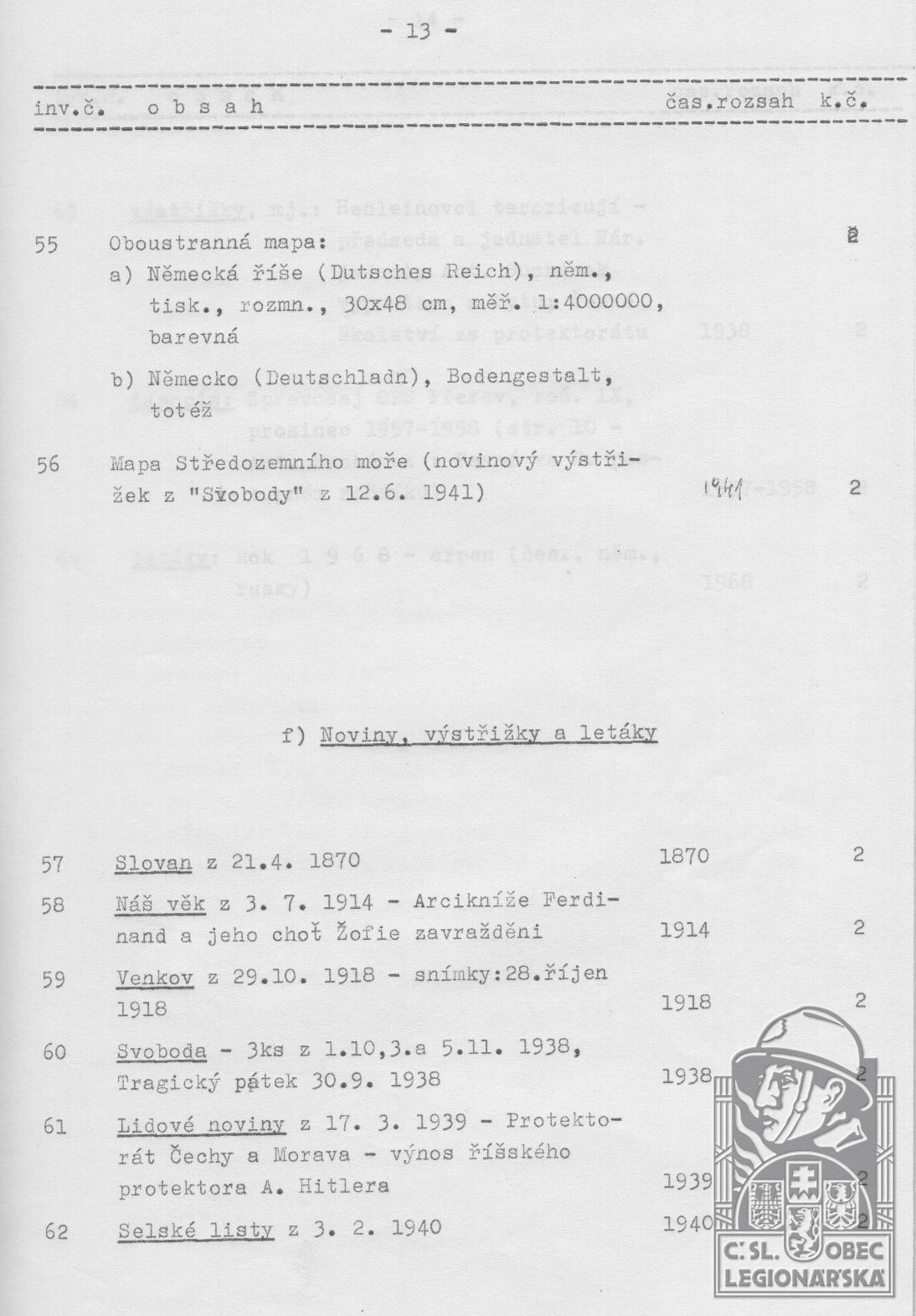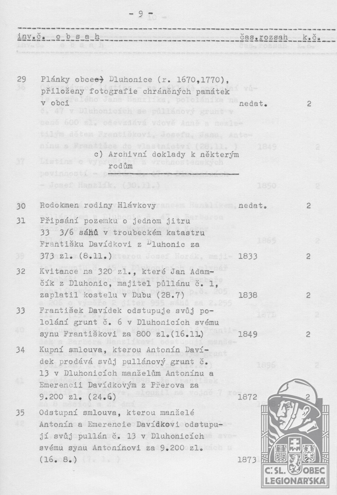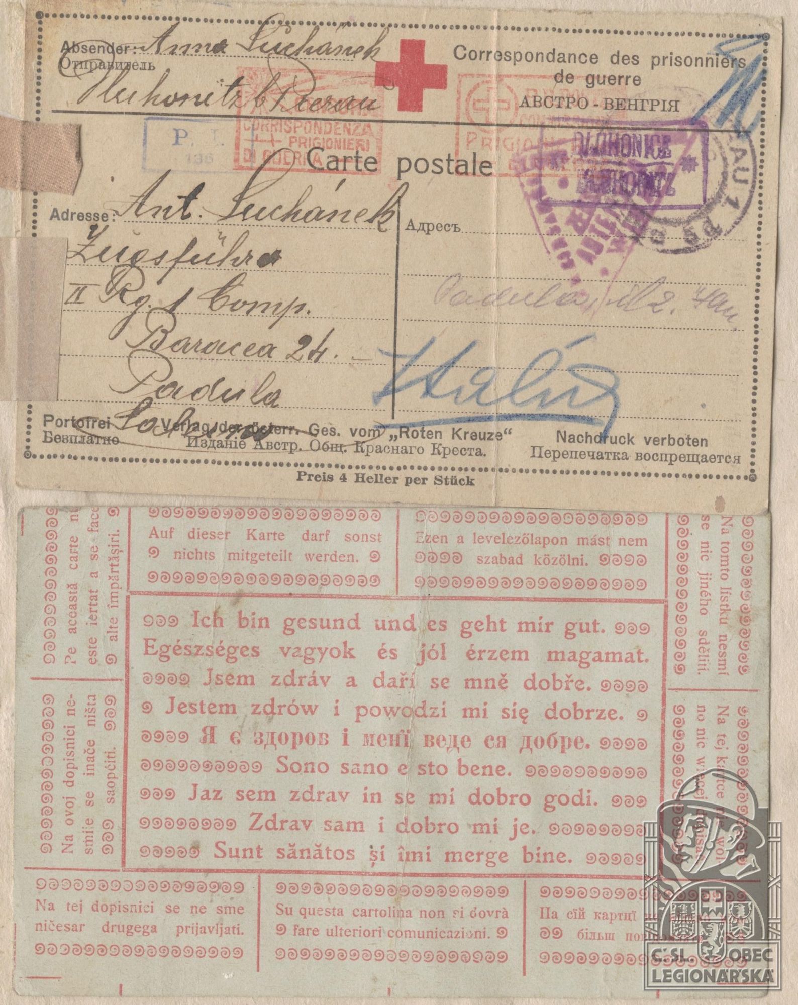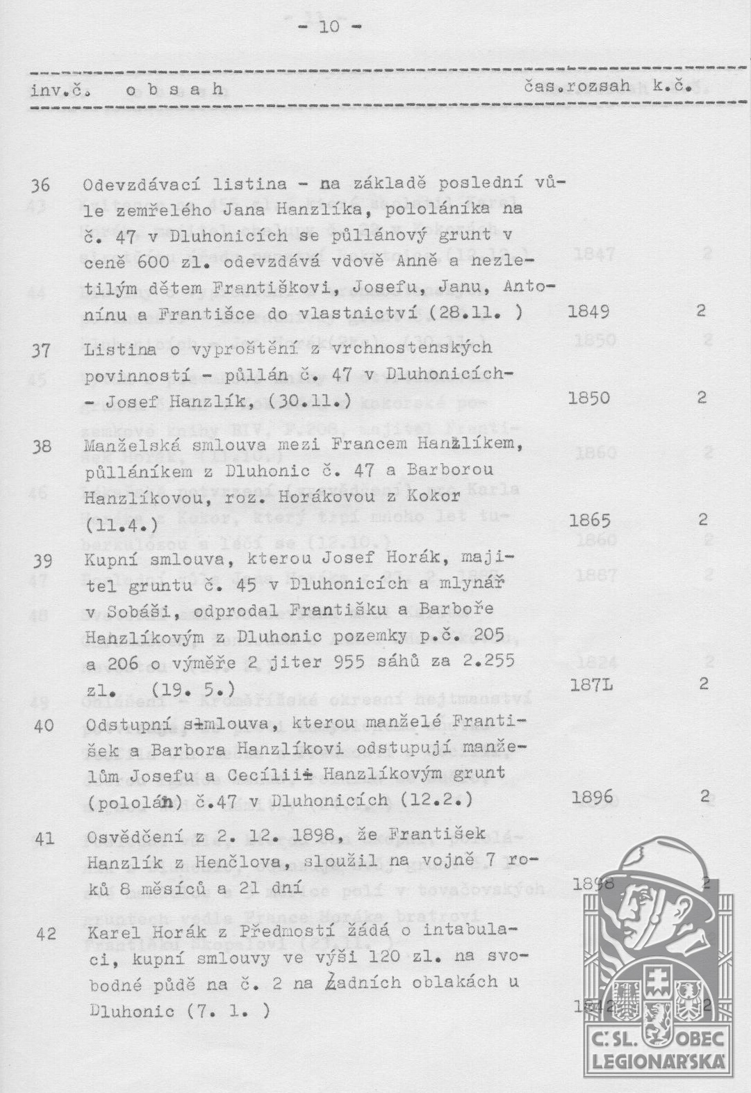 dokumenty spojené s osobou legionáře
