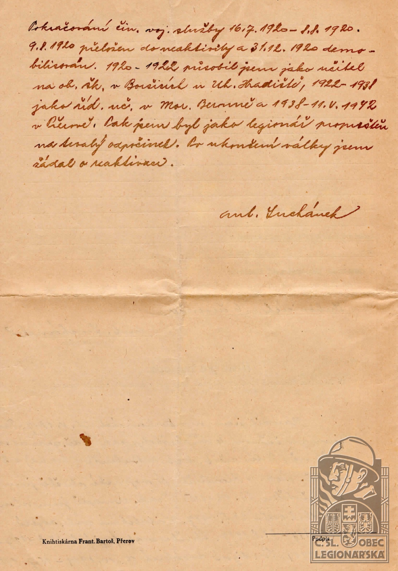 Konec v legiích:12.8.1920 ( Viz poznámku )