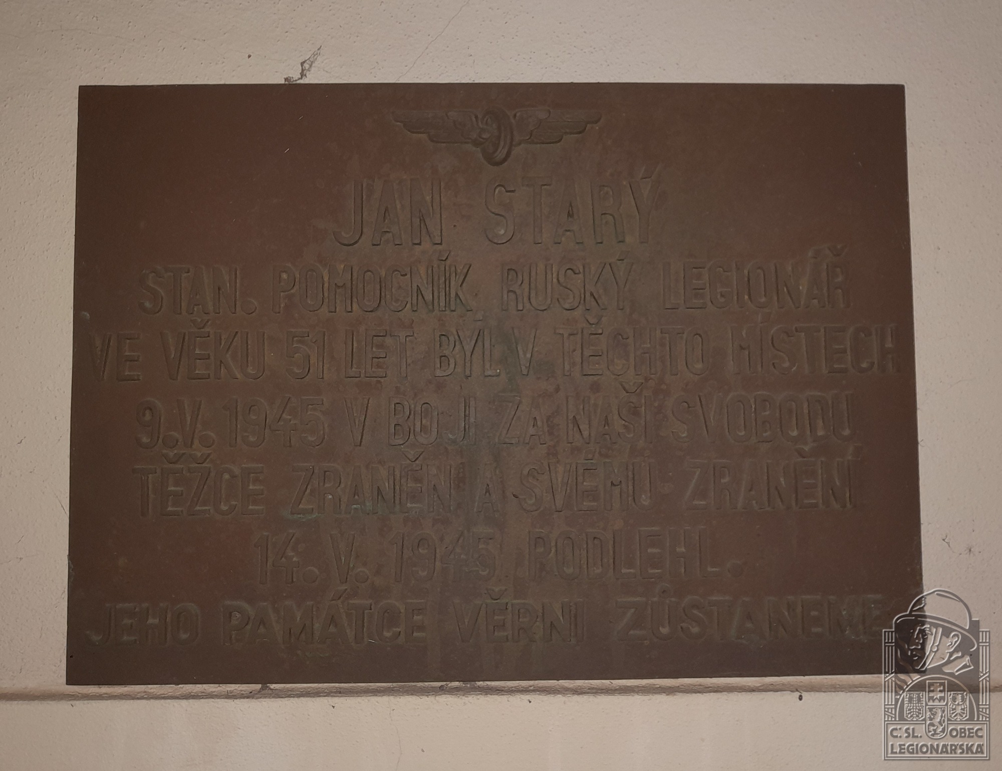 Poznámka:Dne 9.5.1945 v Chocni těžce zraněn při bojích za svobodu. O několik dní později, 14.5.1945, pak následkům tohoto zranění podlehl.