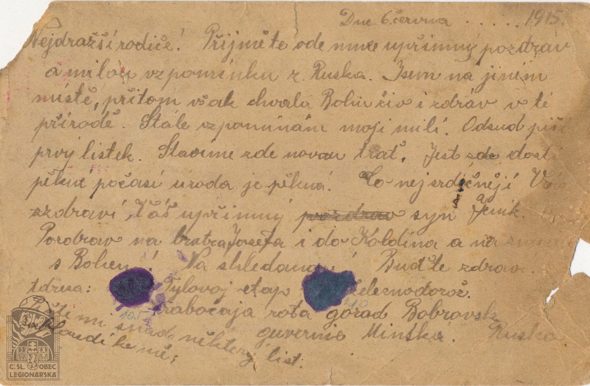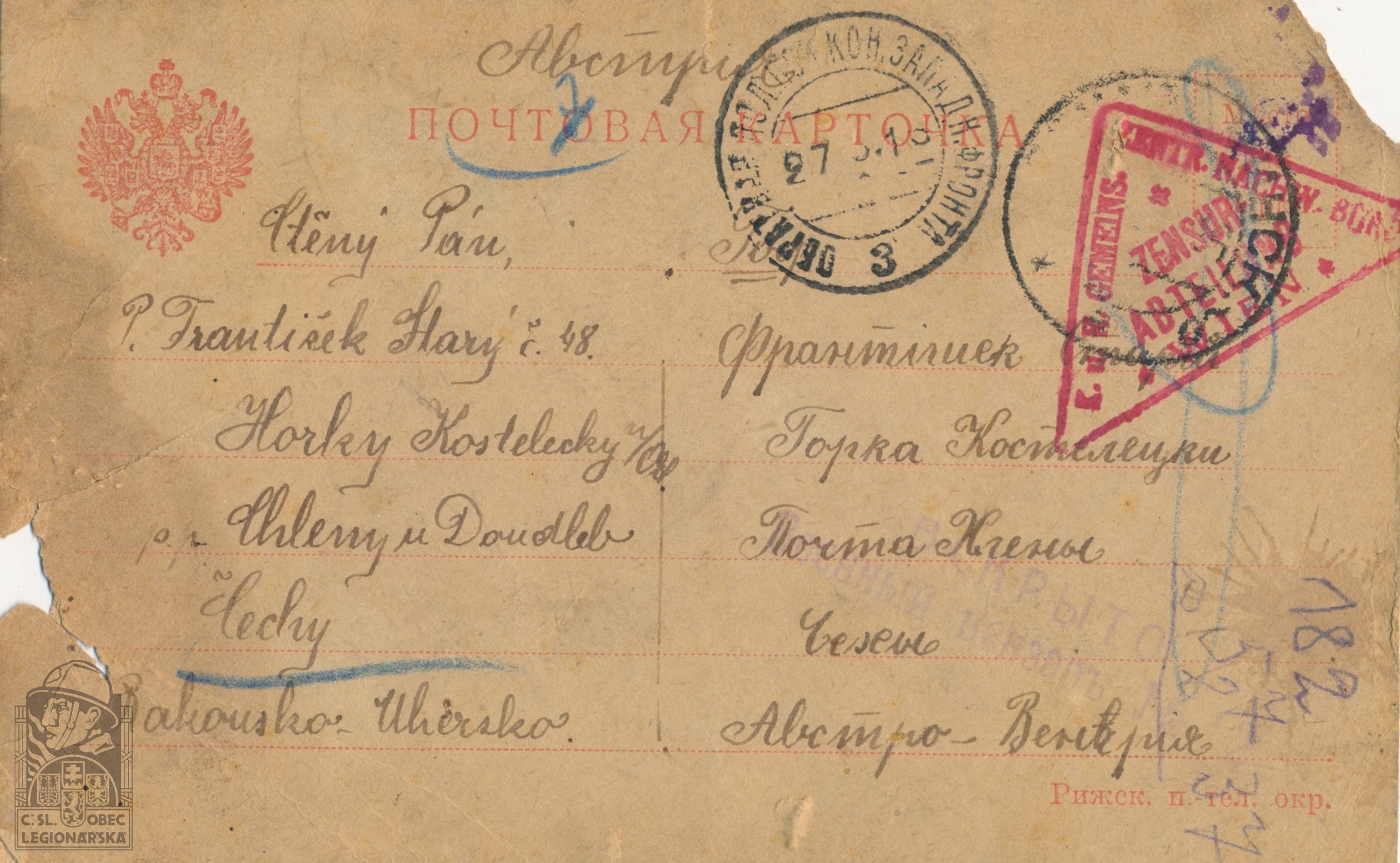 Jednotka v době zařazení:4.stř.pl. ( Čs. legie v Rusku )