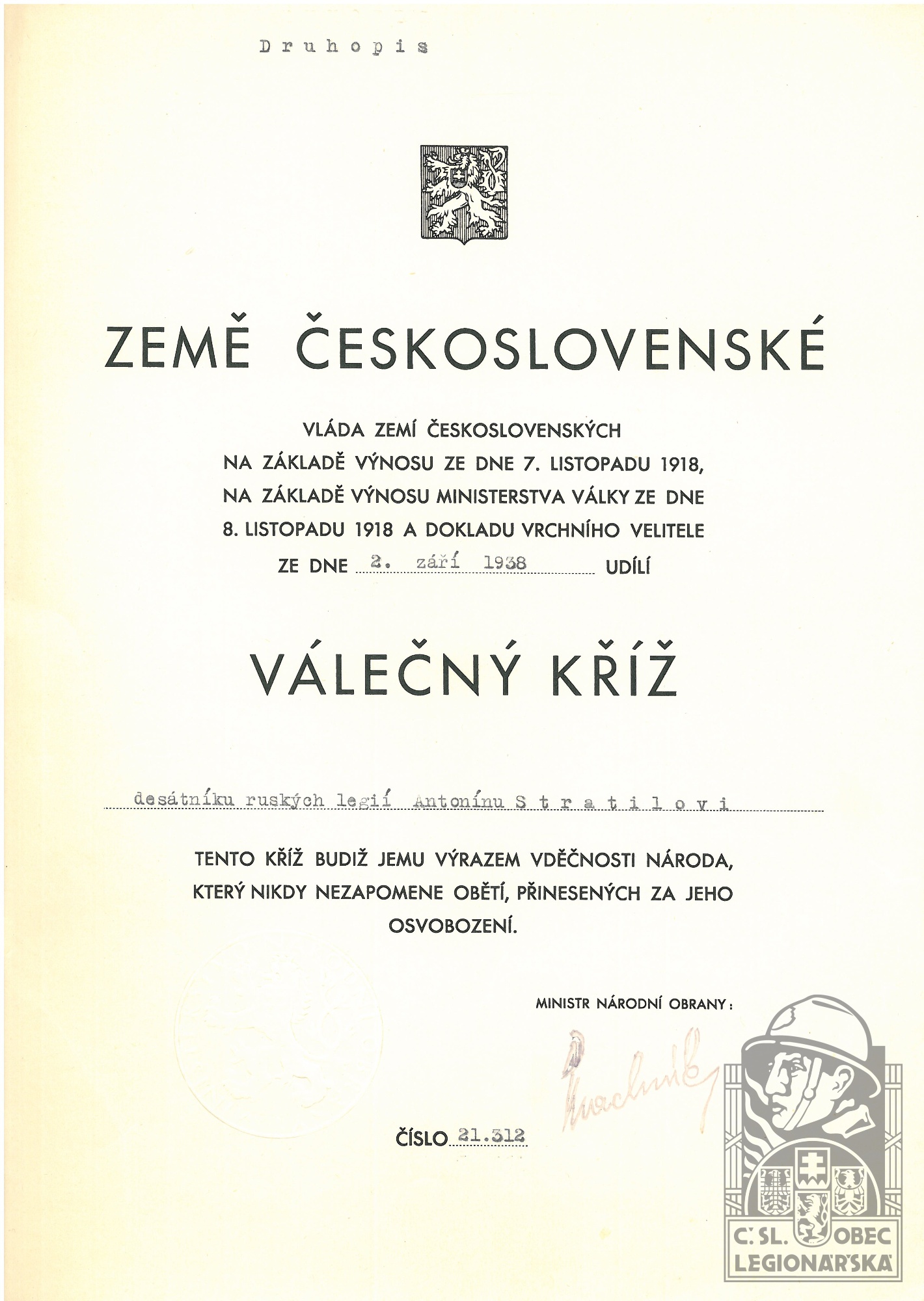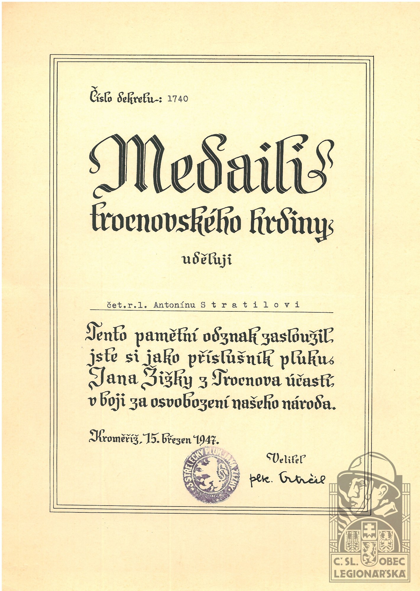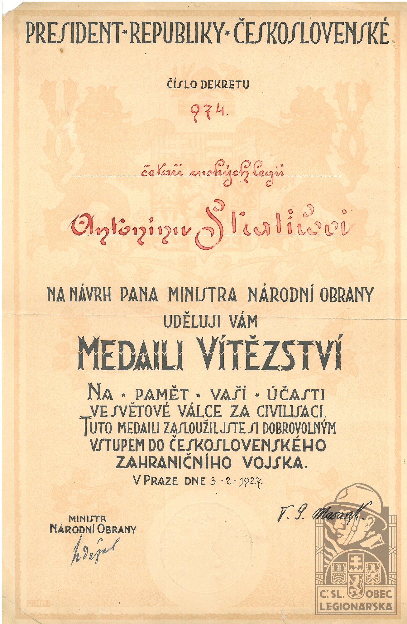 dokumenty spojené s osobou legionáře