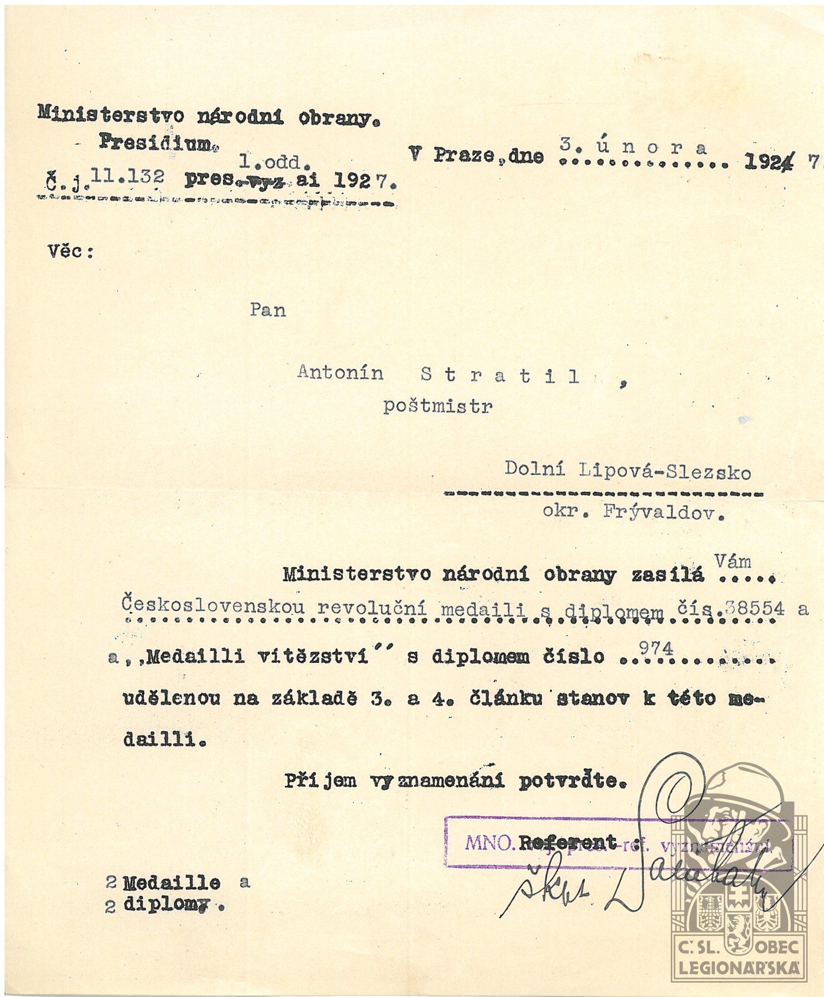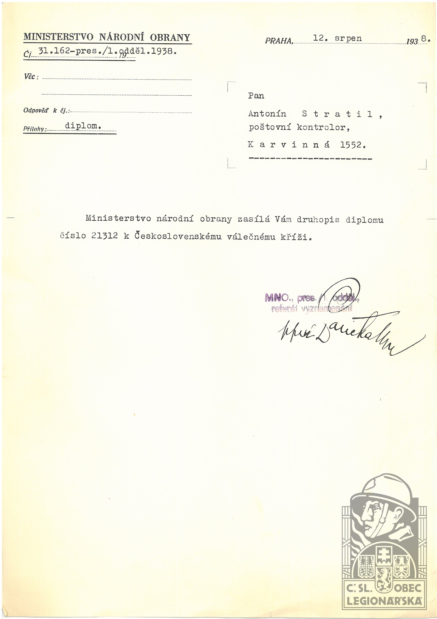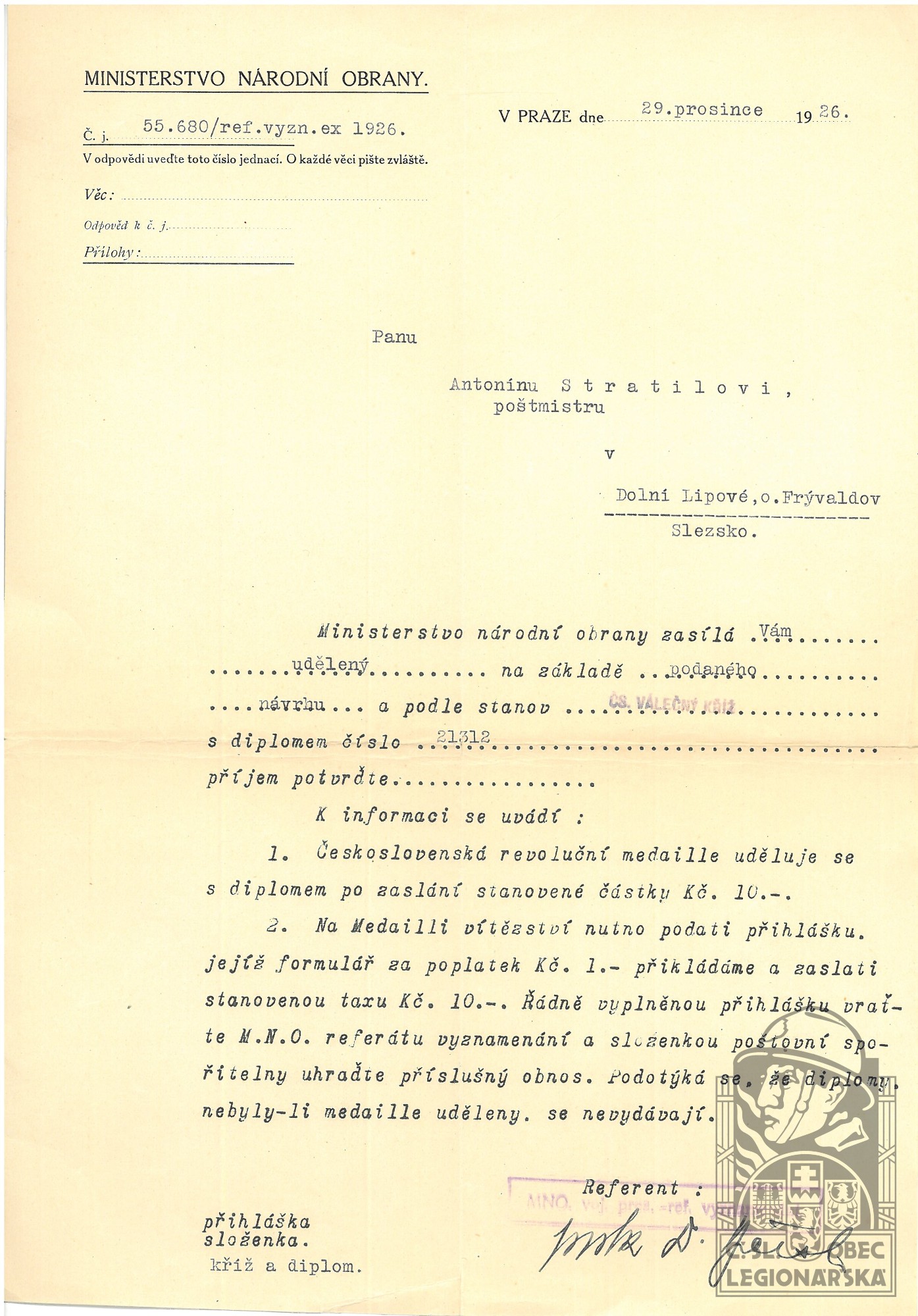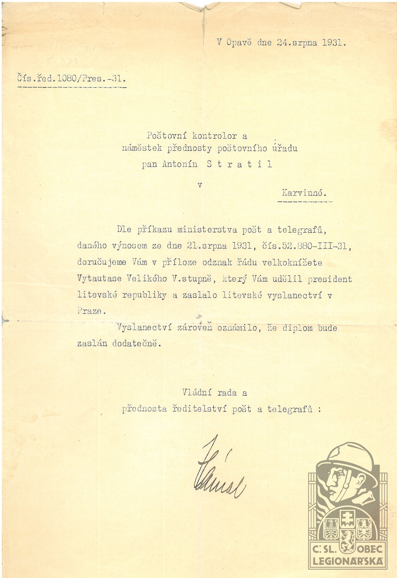 dokumenty spojené s osobou legionáře