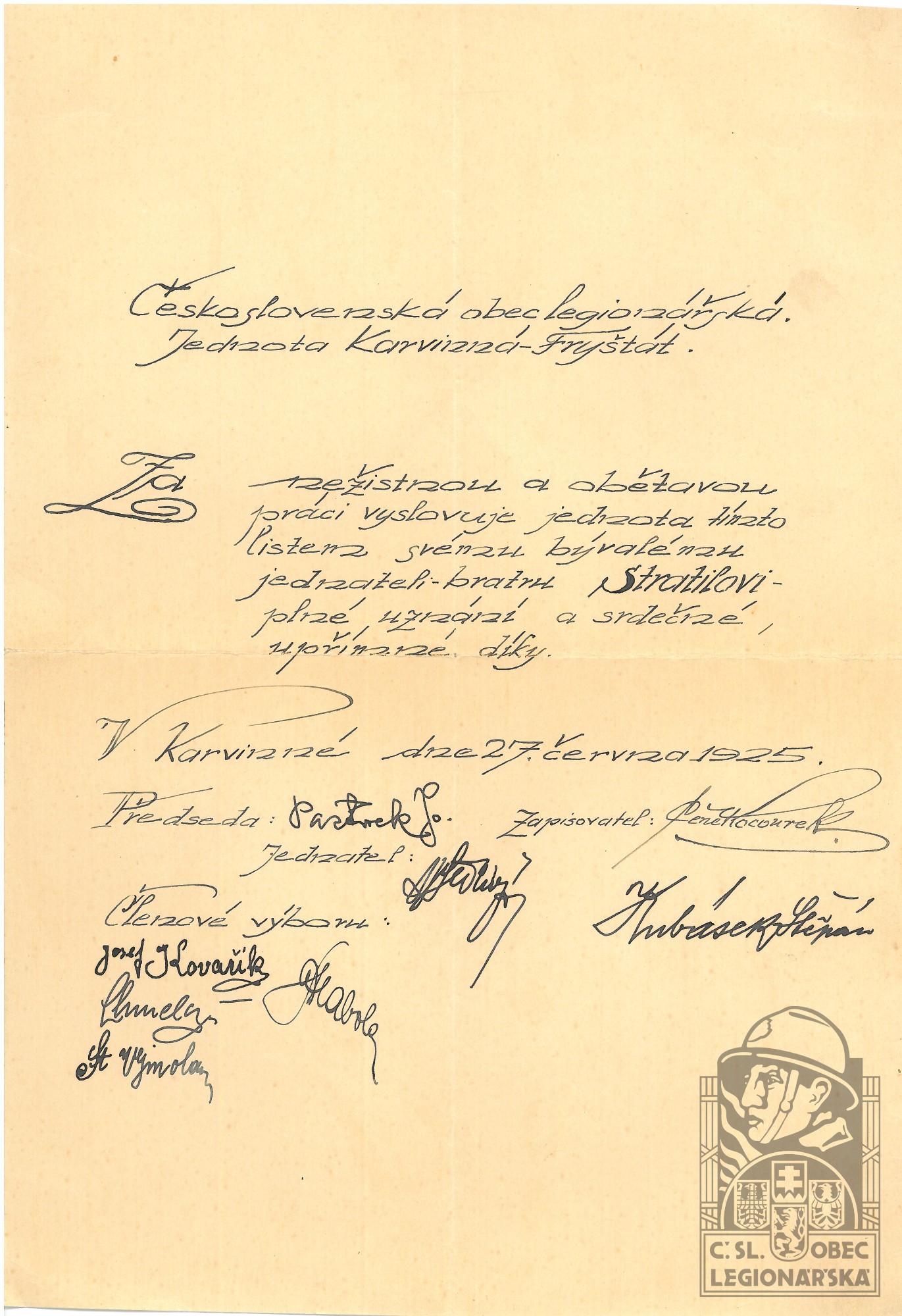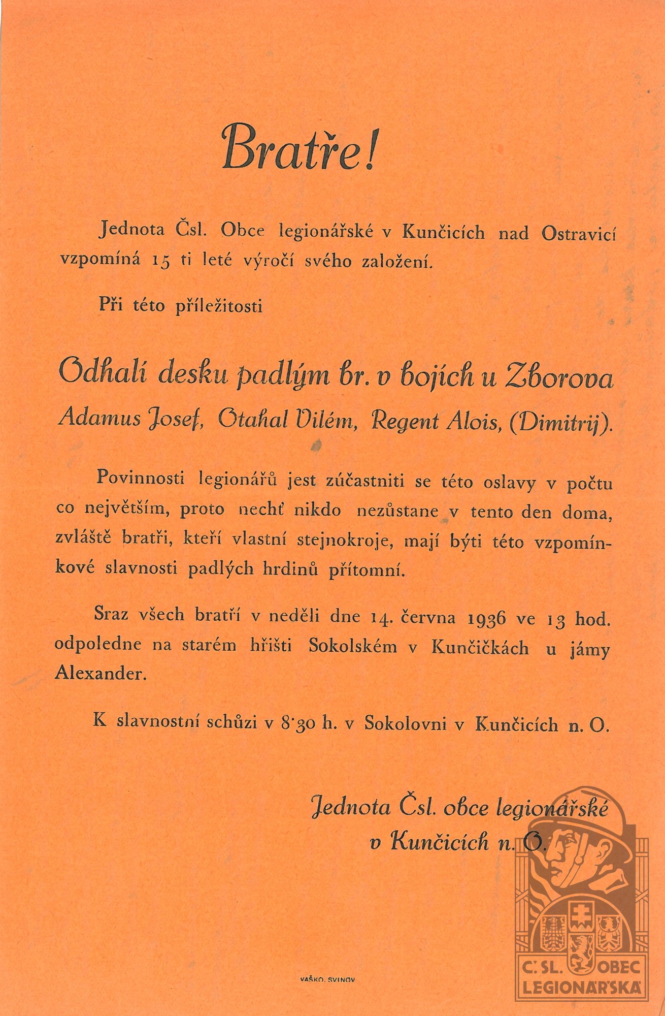 Legionářska organizace:ČsOL - Kunčice nad Oslavicí
