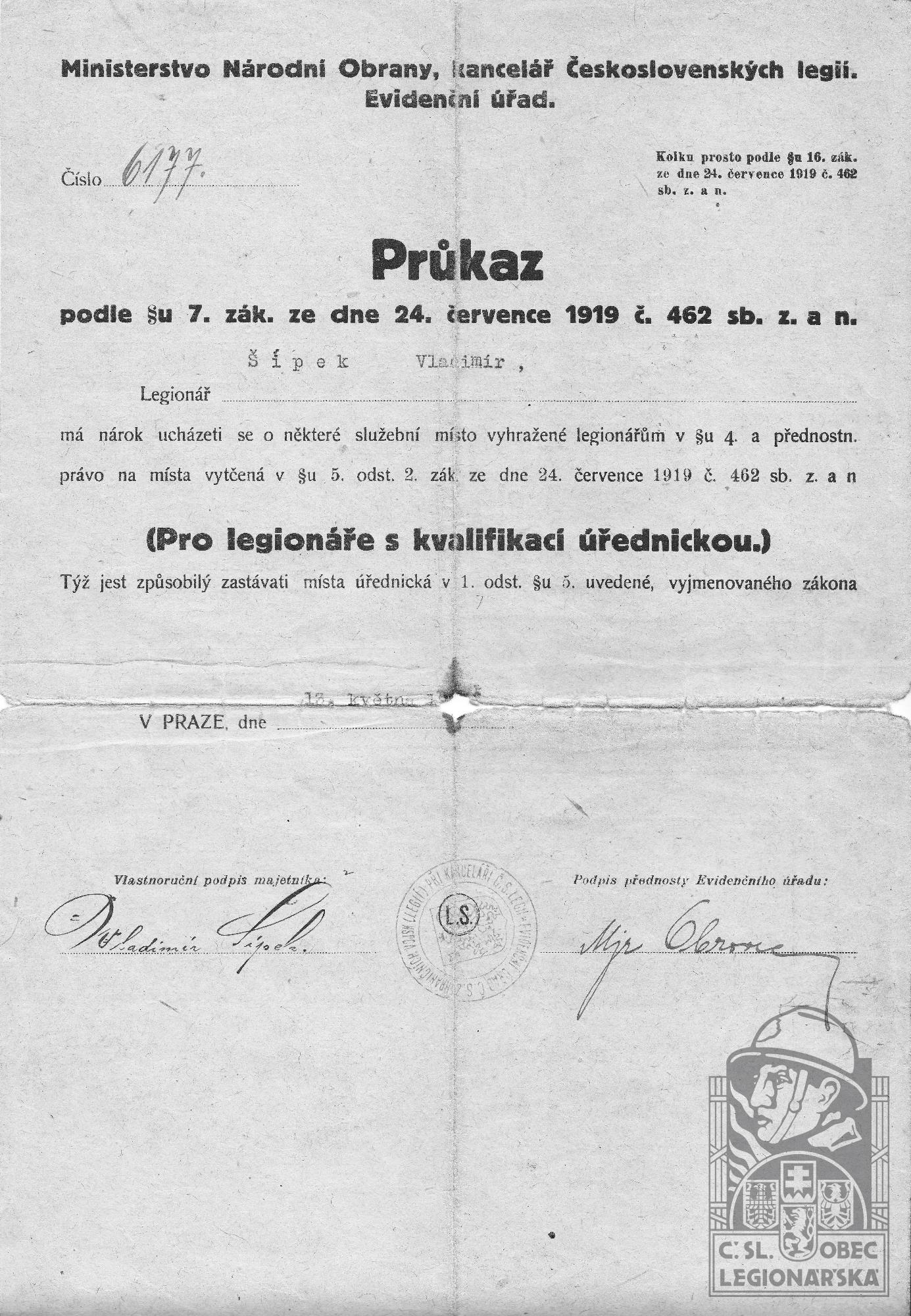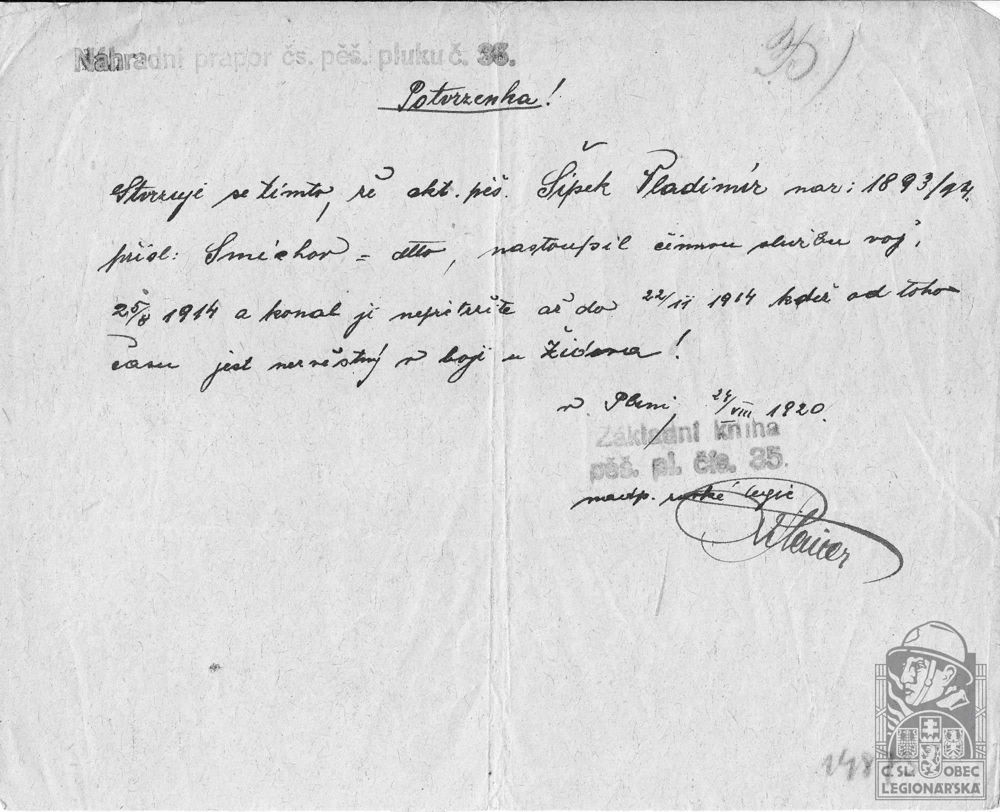 Zdroj informací: legionářský poslužný spis osobní karta legionáře