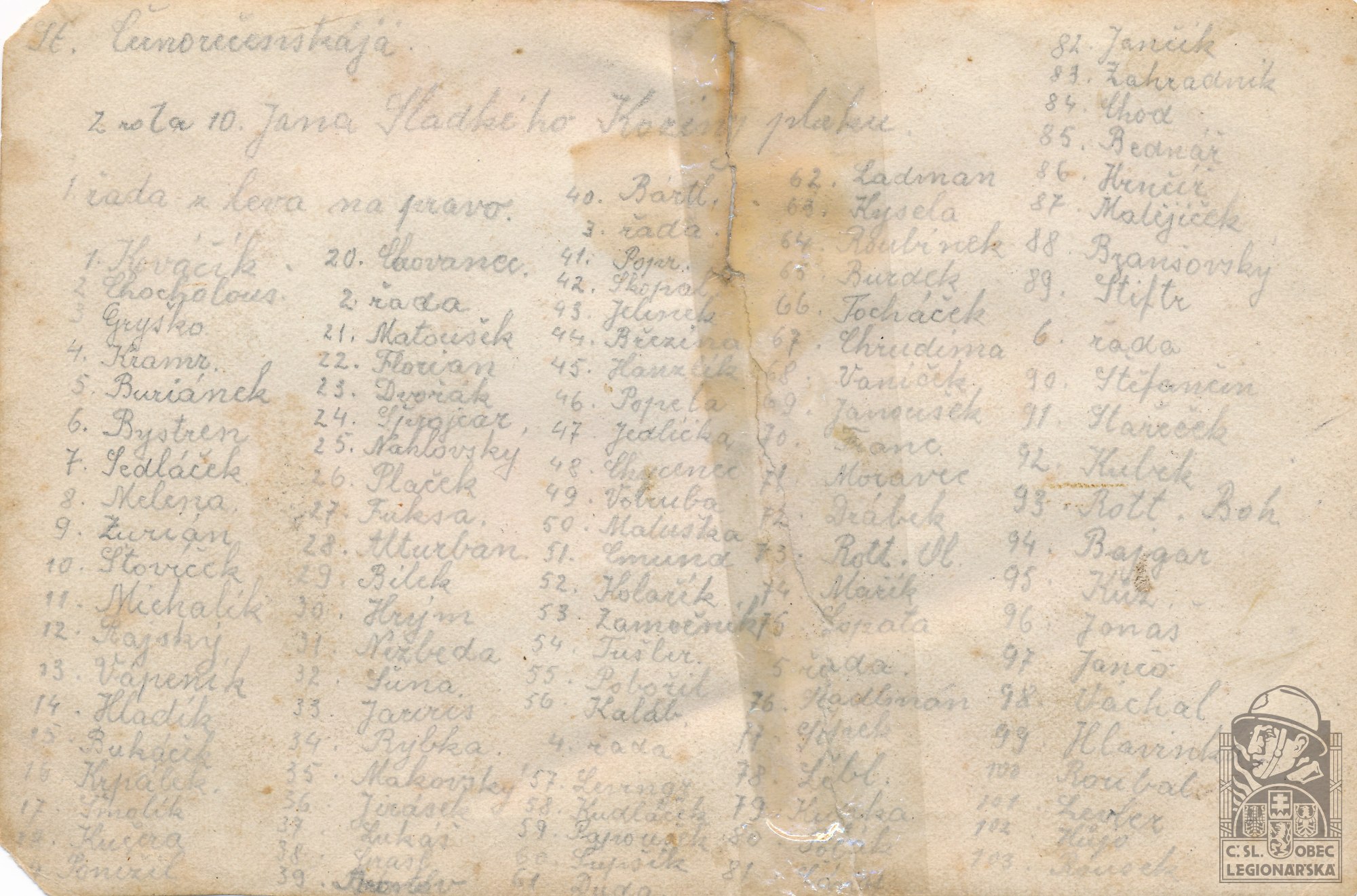 Jednotka v době zařazení:10.stř.pl. ( Čs. legie v Rusku )