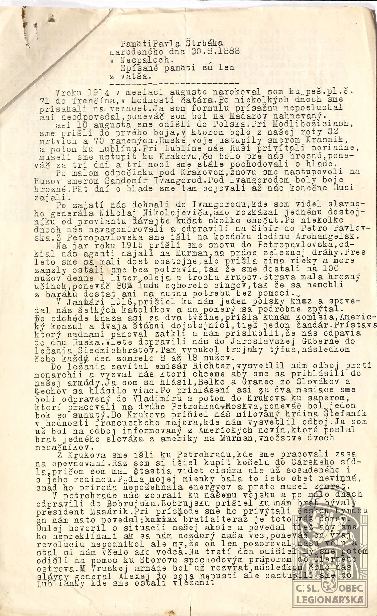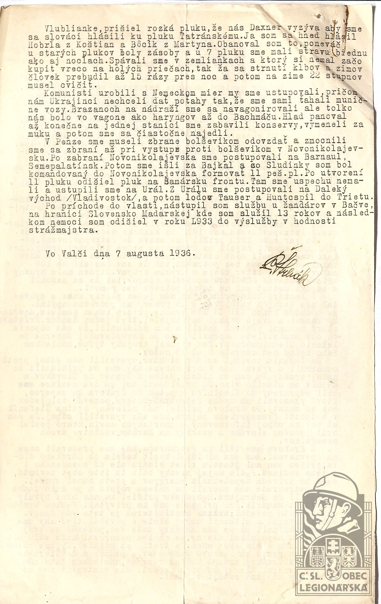 dokumenty spojené s osobou legionáře