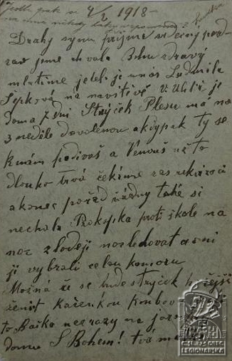 Jednotka v době zařazení:2.stř.pl. ( Čs. legie v Rusku )