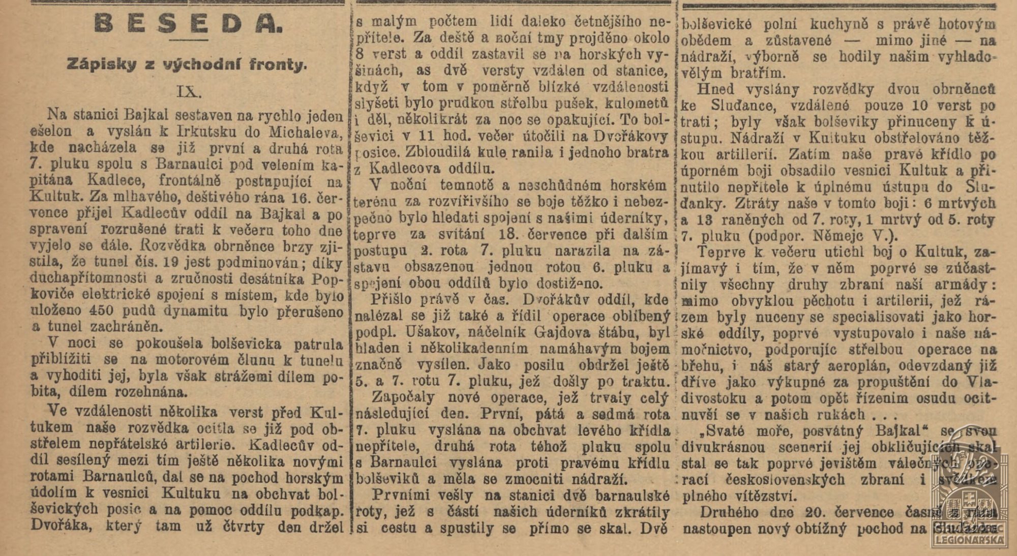Jednotka v době zařazení:7.stř.pl. ( Čs. legie v Rusku )