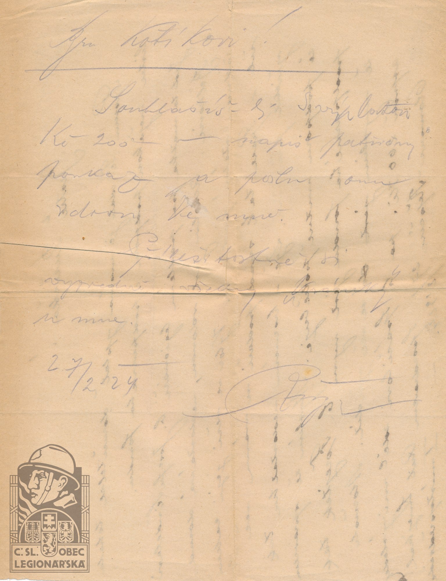 Zdroj informací: legionářský poslužný spis SOkA Olomouc