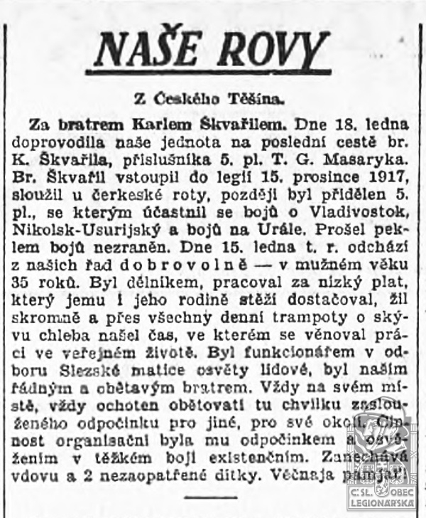 Jednotka v době zařazení:5.stř.pl. ( Čs. legie v Rusku )
