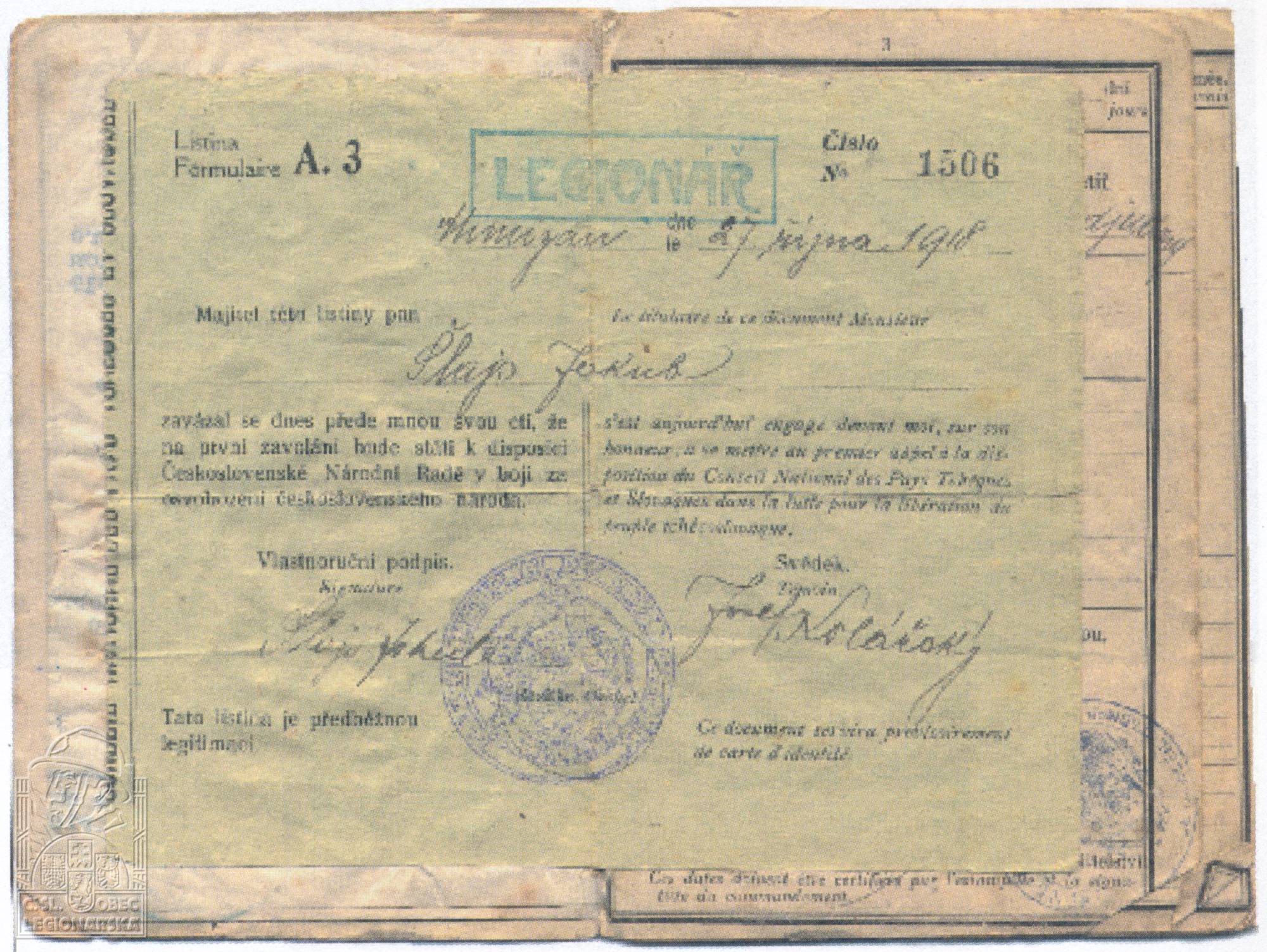 Jednotka v době zařazení:24.stř.pl. ( Čs. legie v Francii )