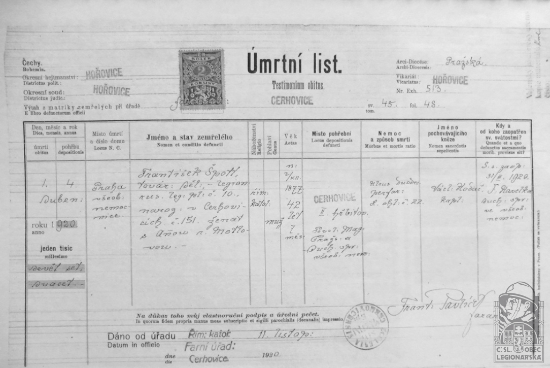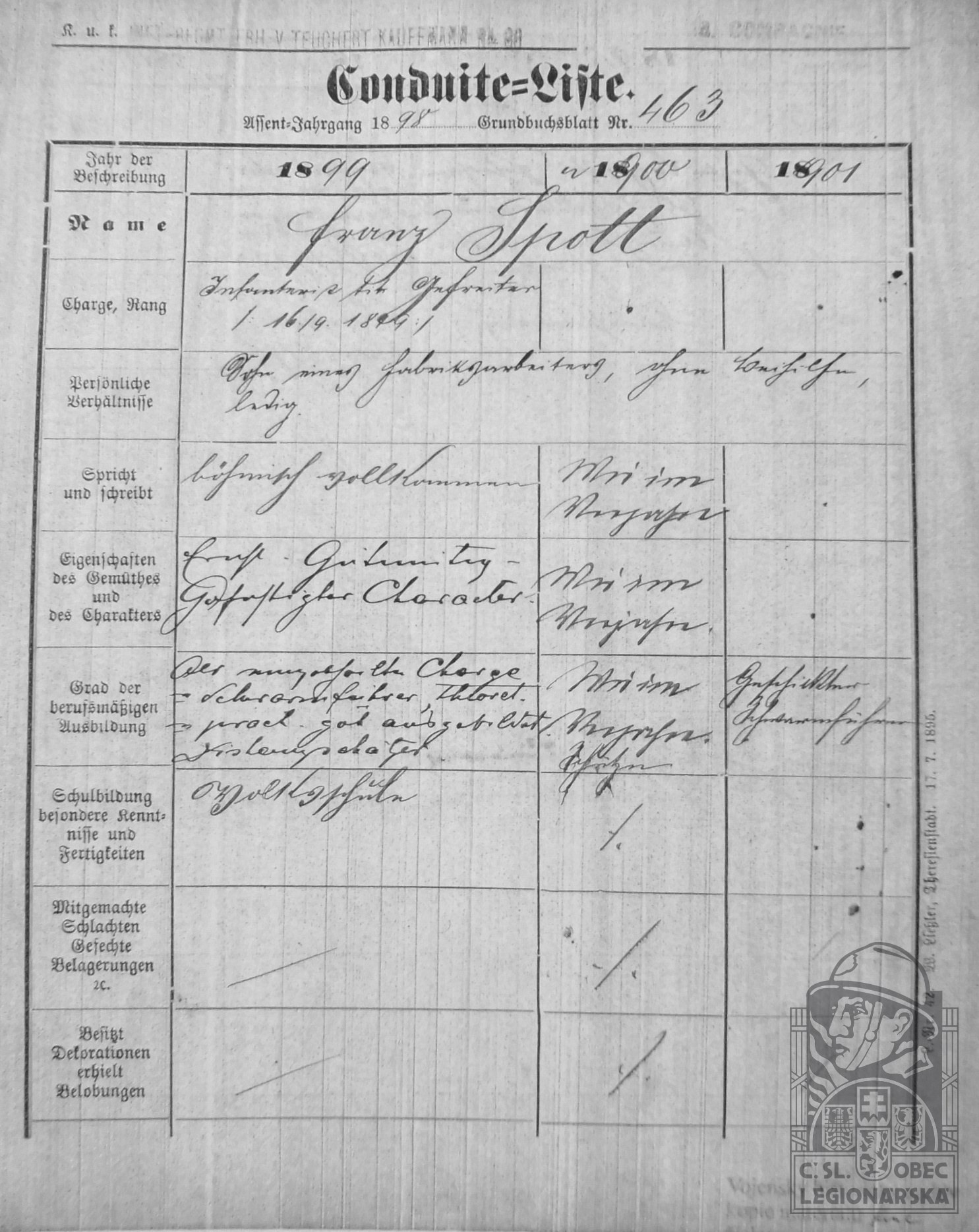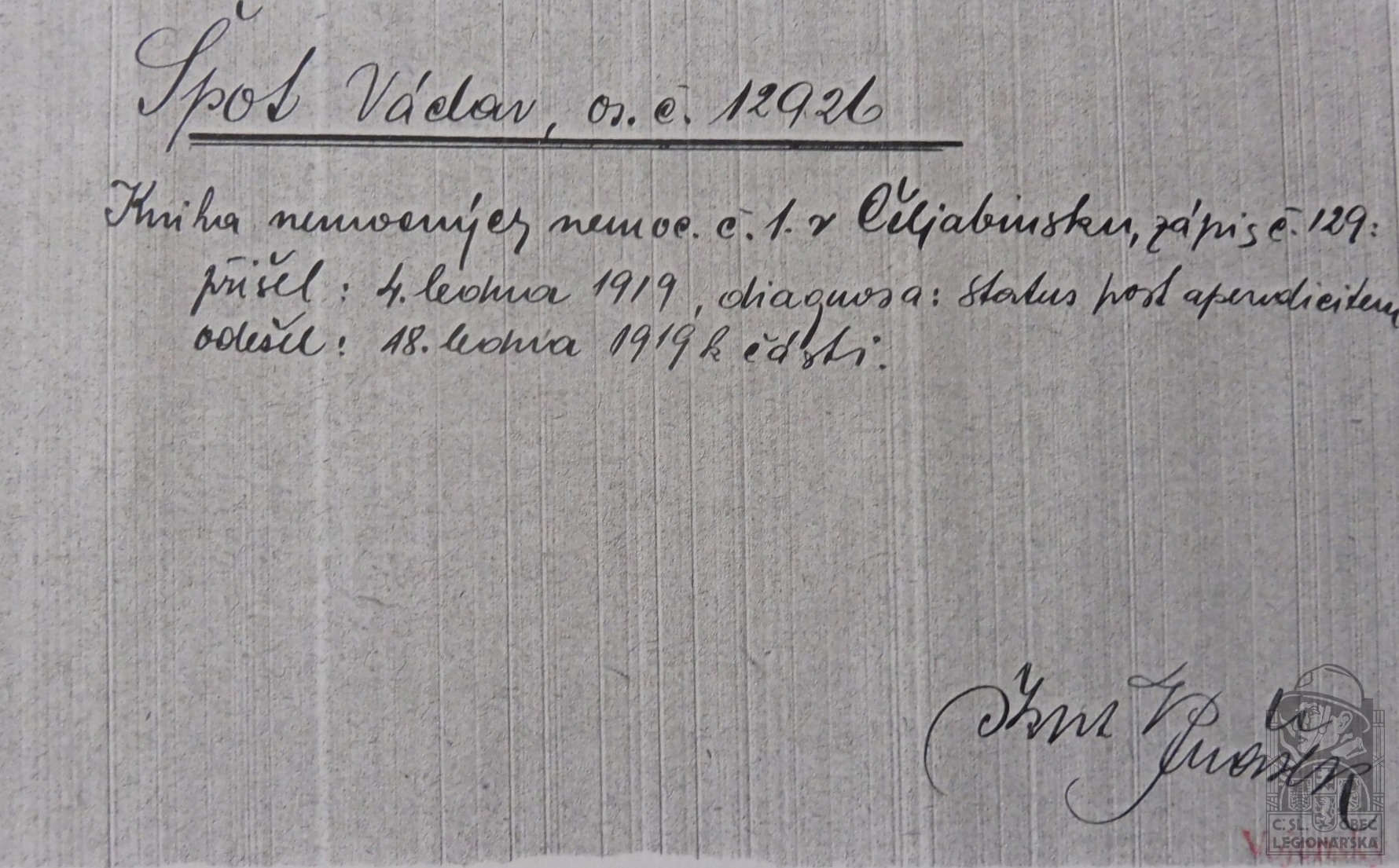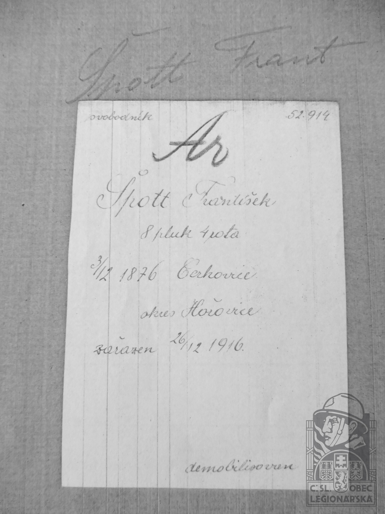 Zdroj informací: legionářský poslužný spis osobní karta legionáře