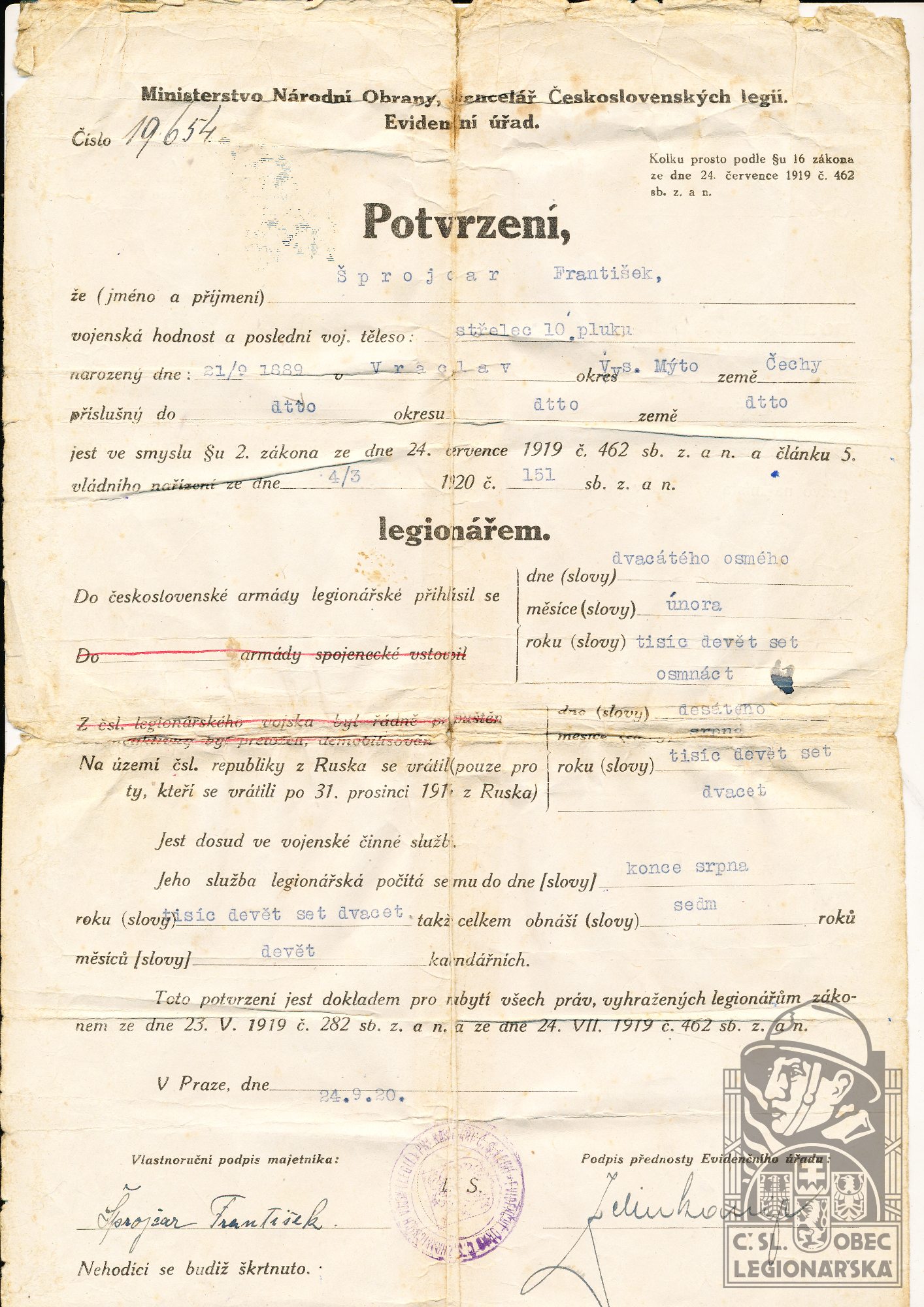 Konec v legiích:16.11.1920 ( Demobilizován )