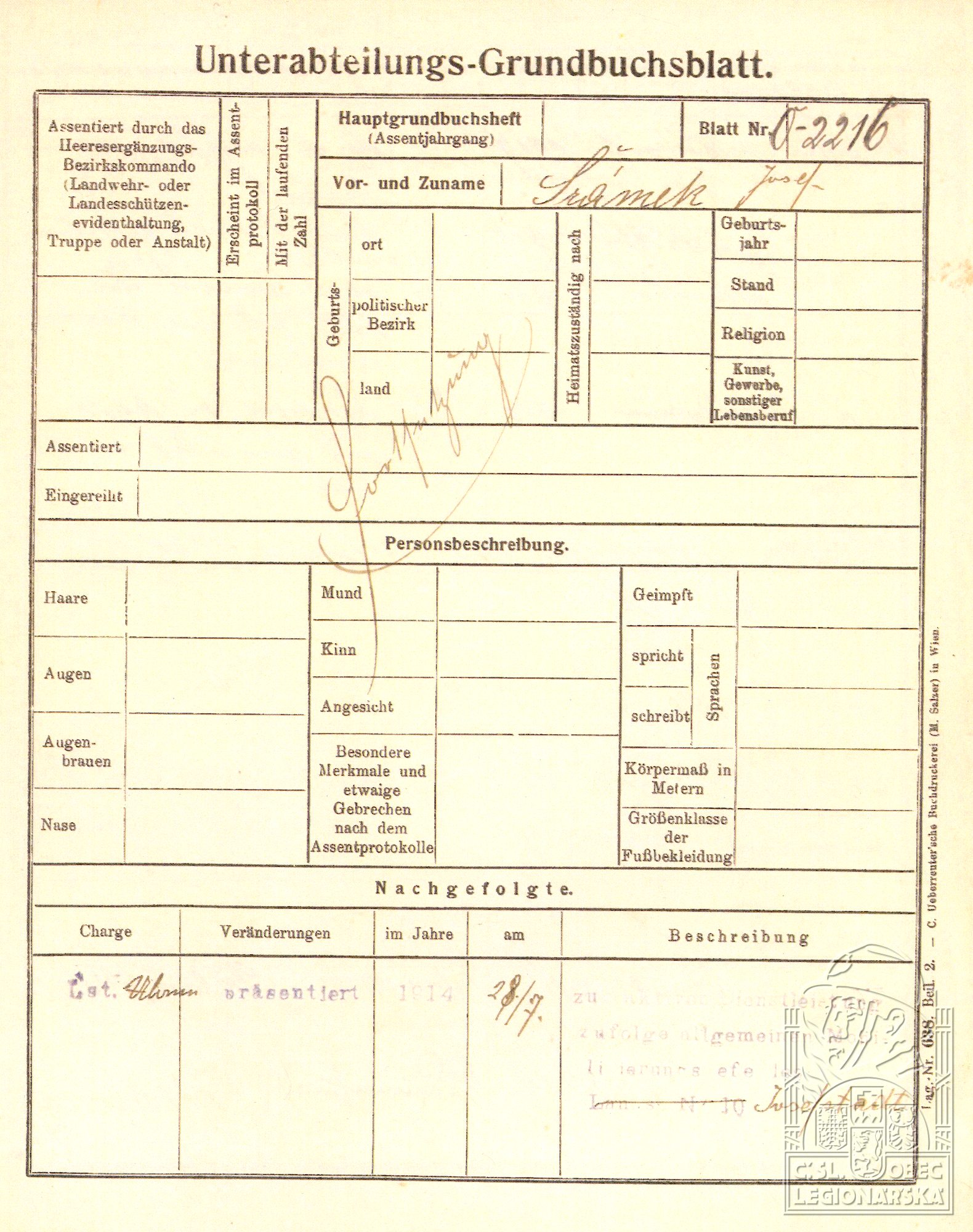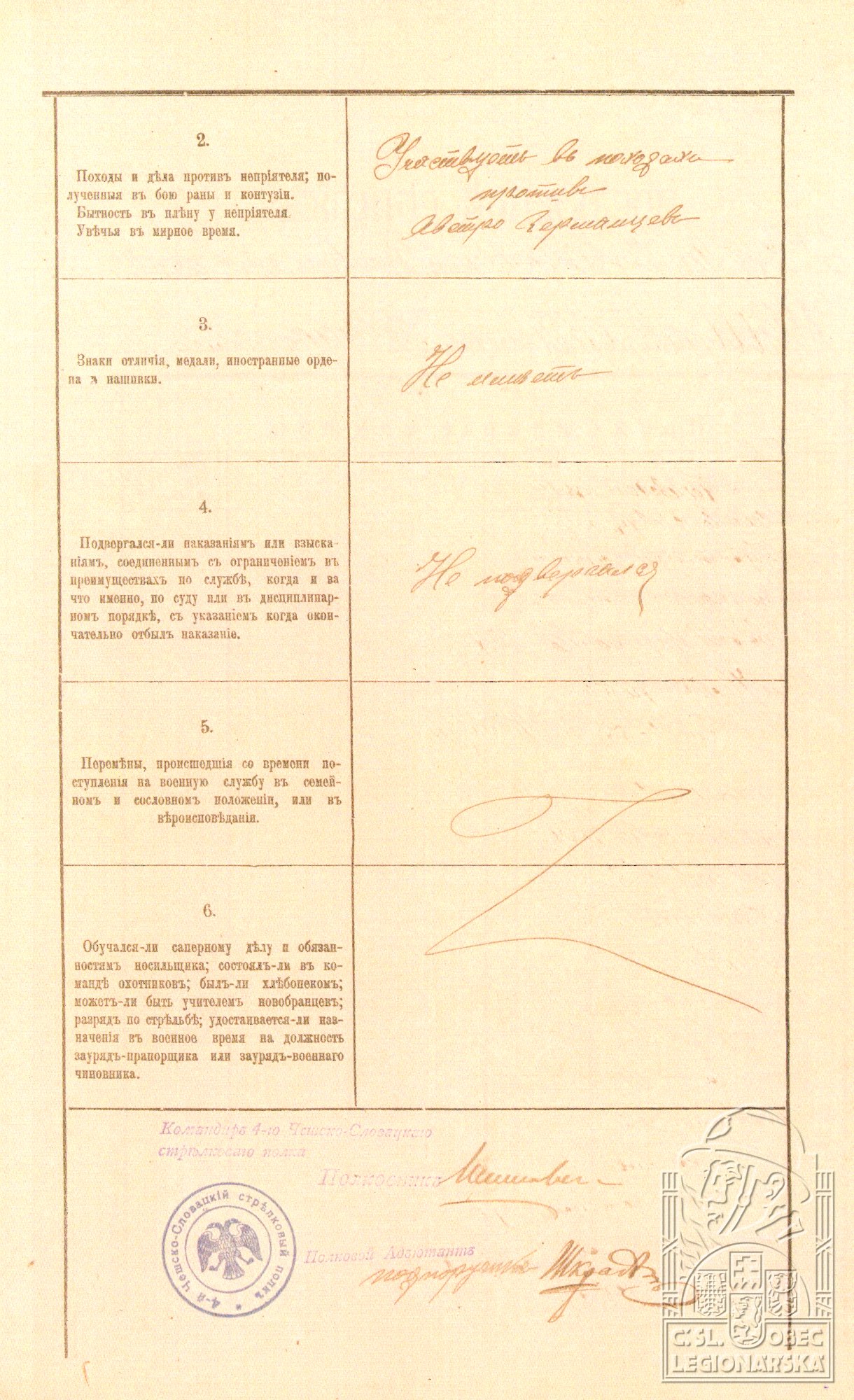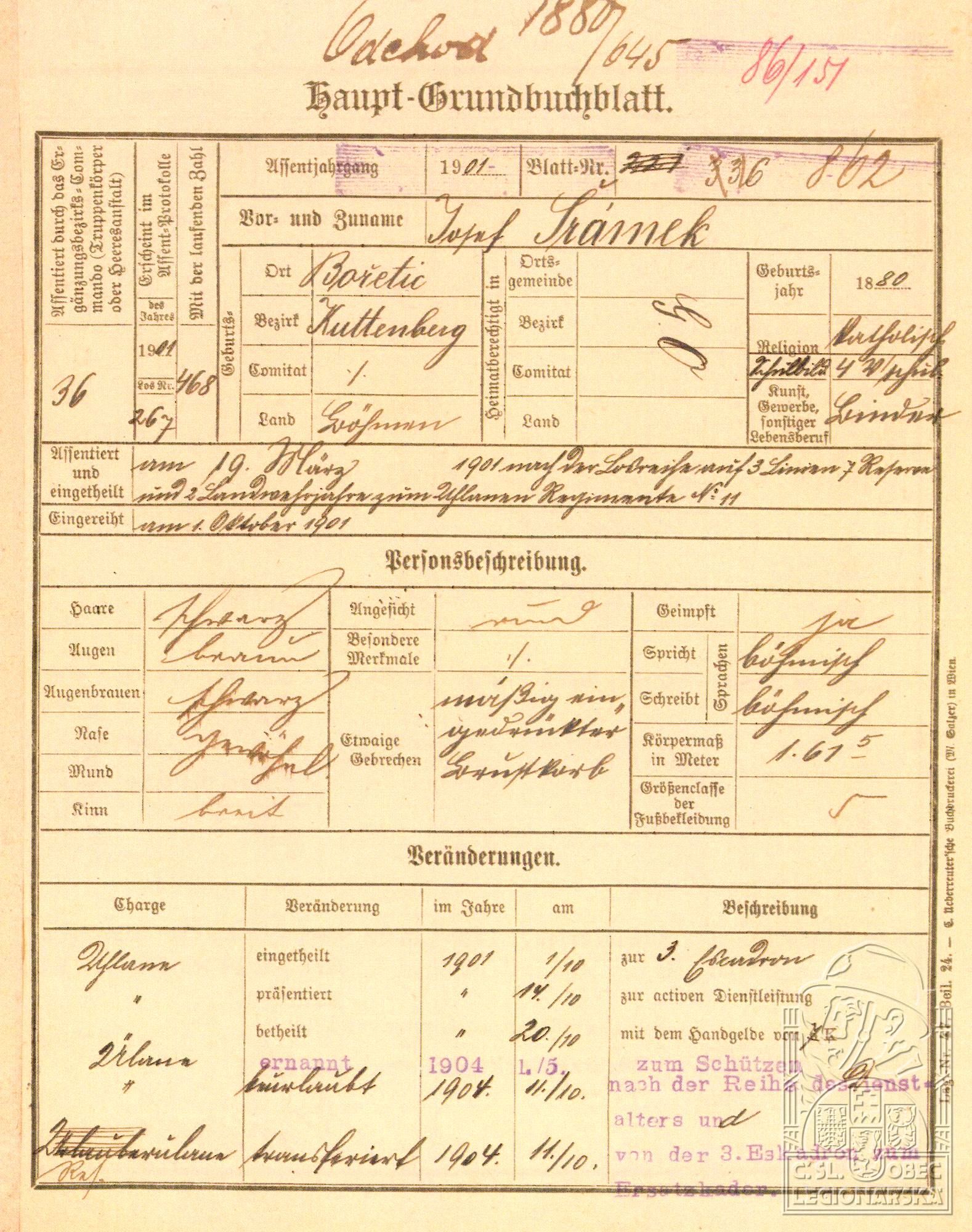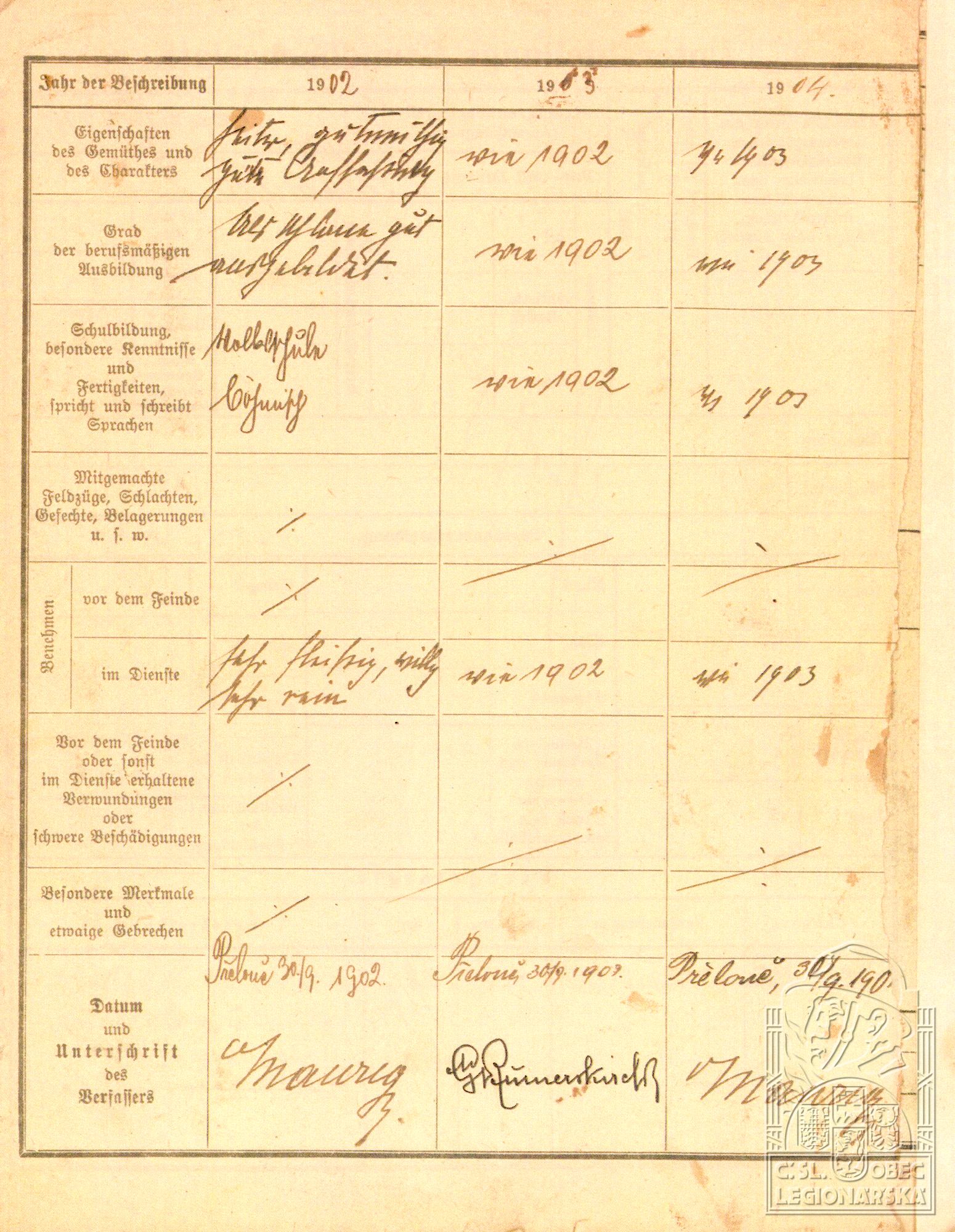 Zdroj informací: legionářský poslužný spis osobní karta legionáře