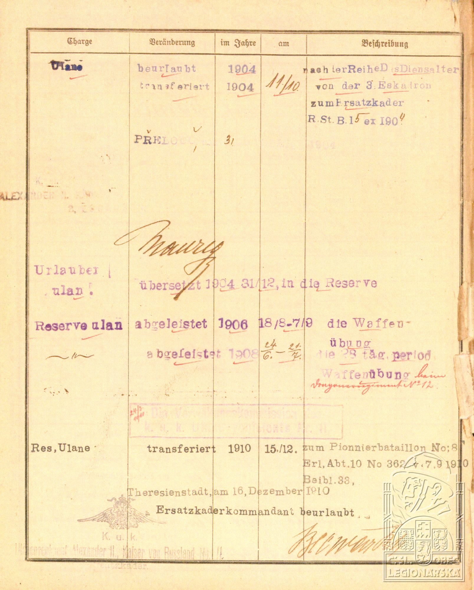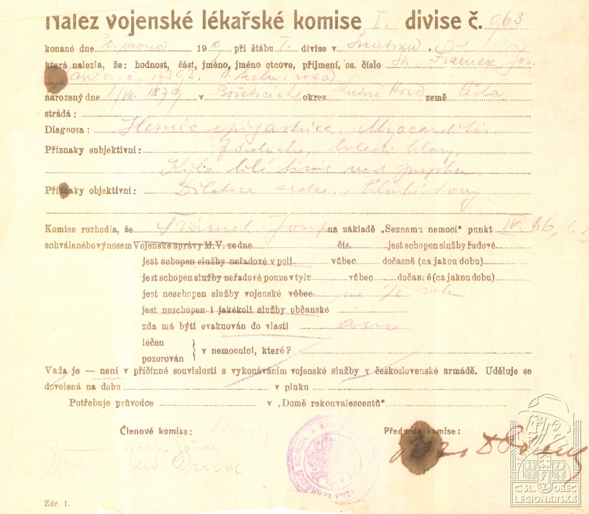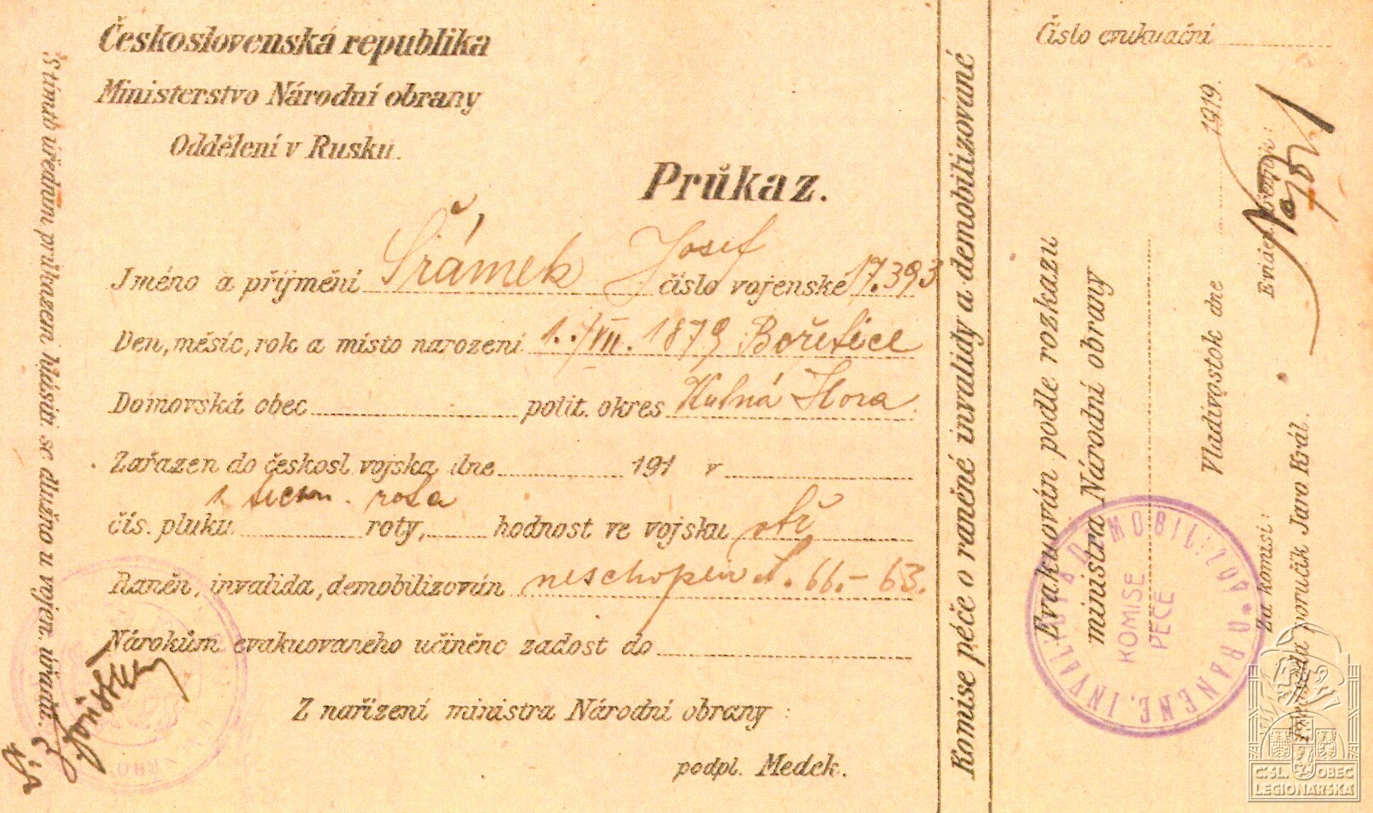 dokumenty spojené s osobou legionáře