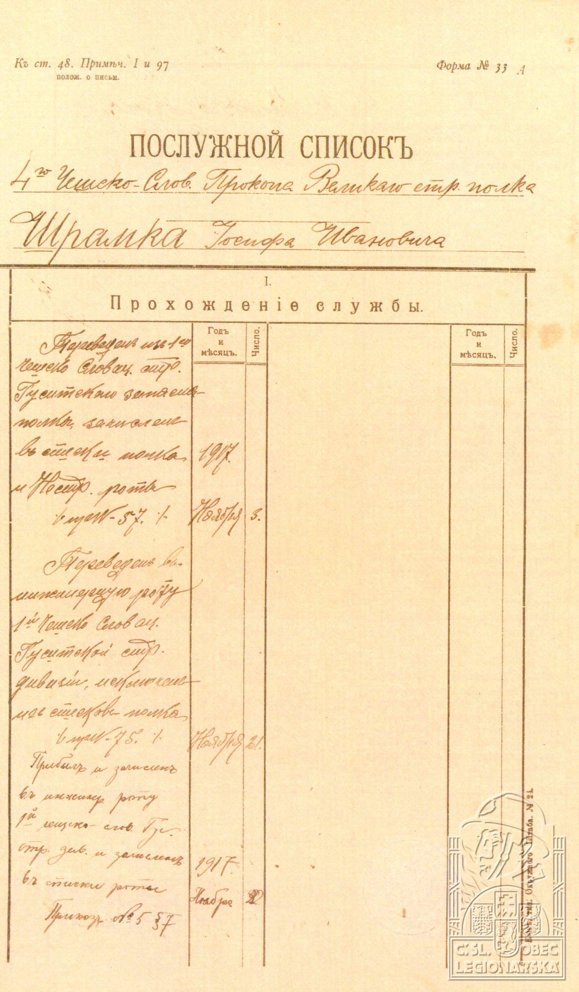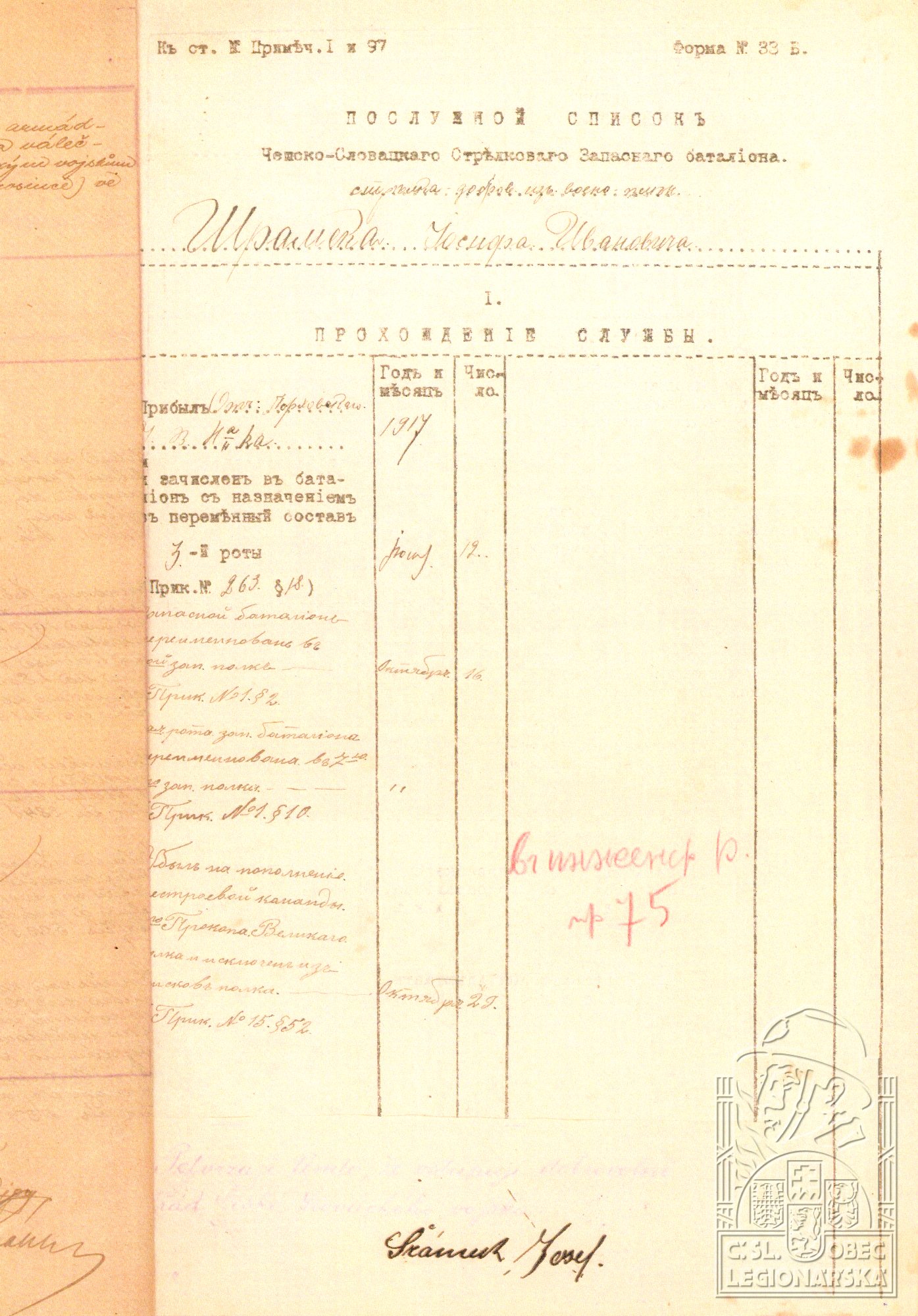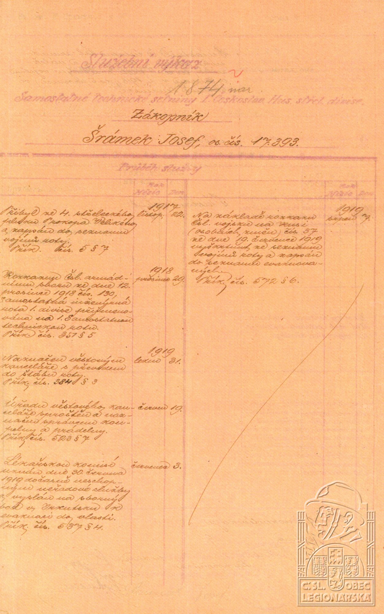 Datum zařazení do legií:17.7.1917