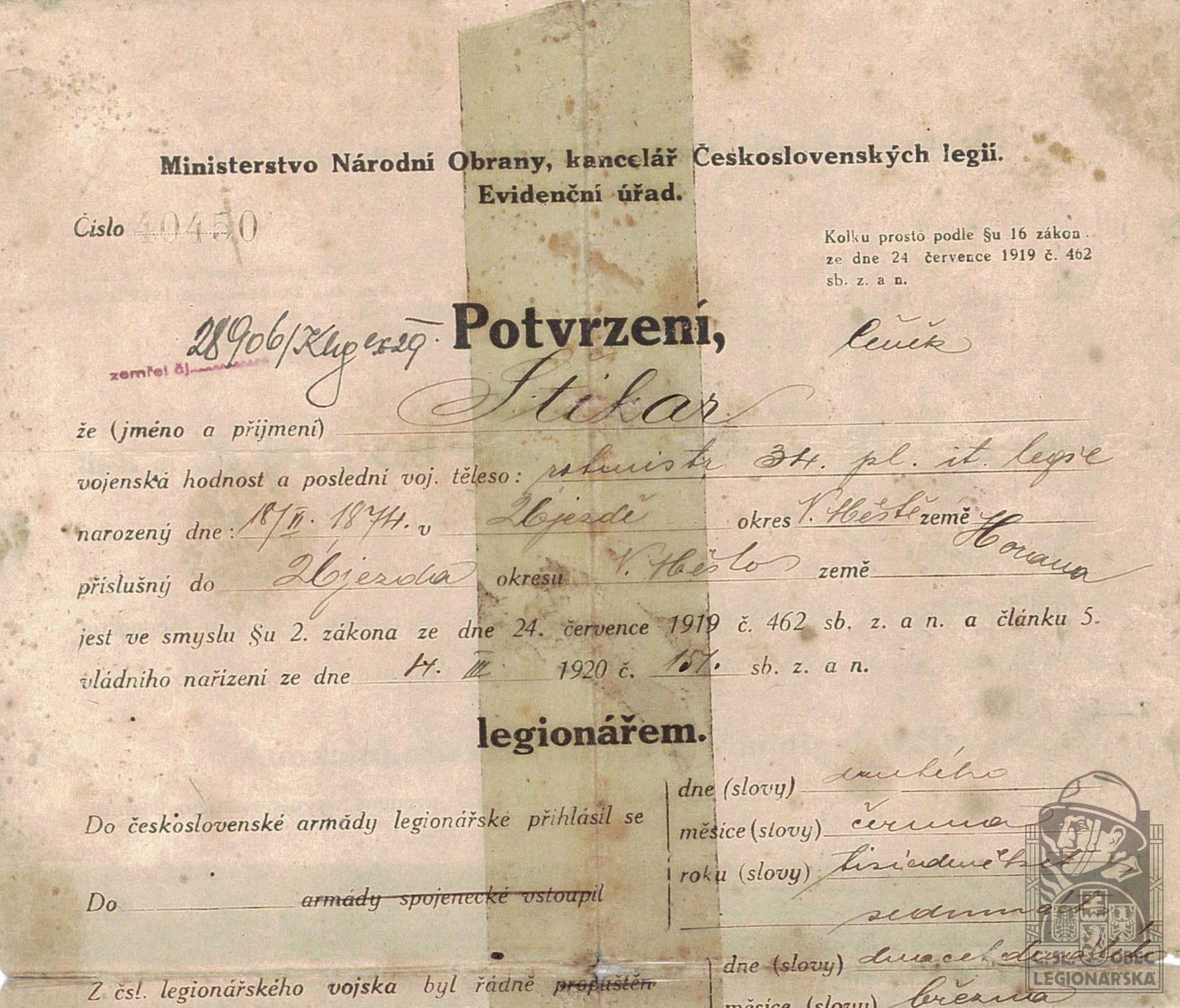 ŠTIKAR Čeněk *18.6.1874