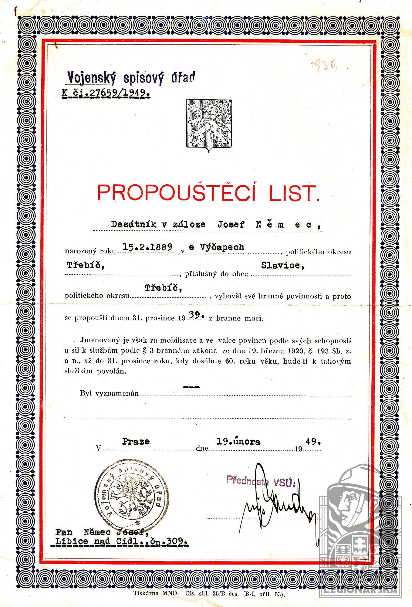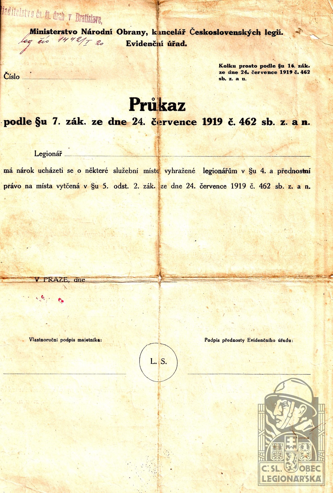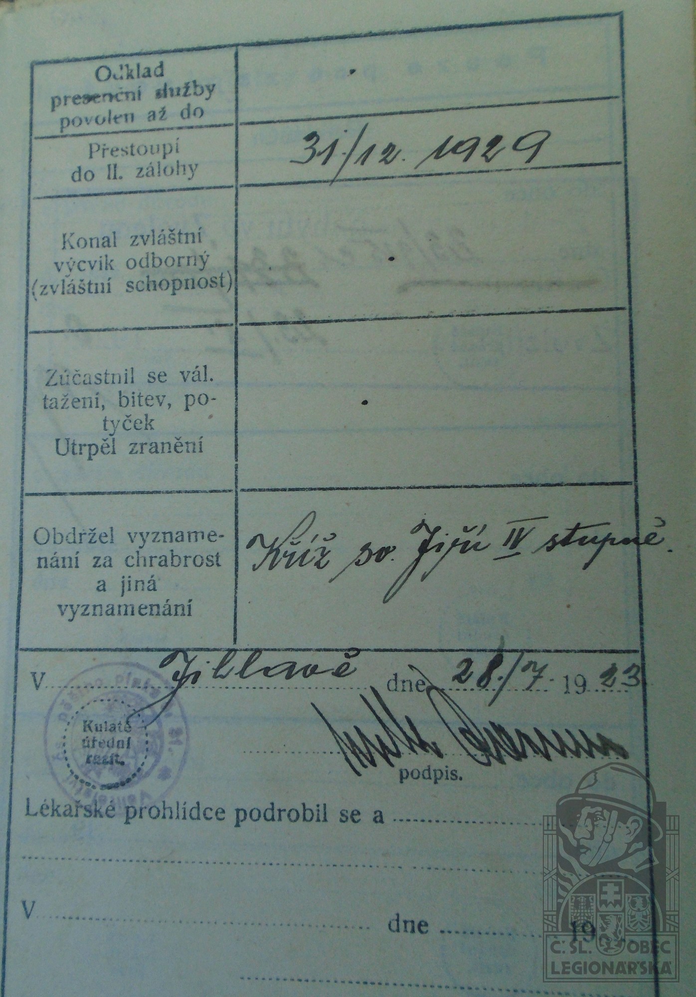 Konec v legiích:10.8.1920 ( Demobilizován )