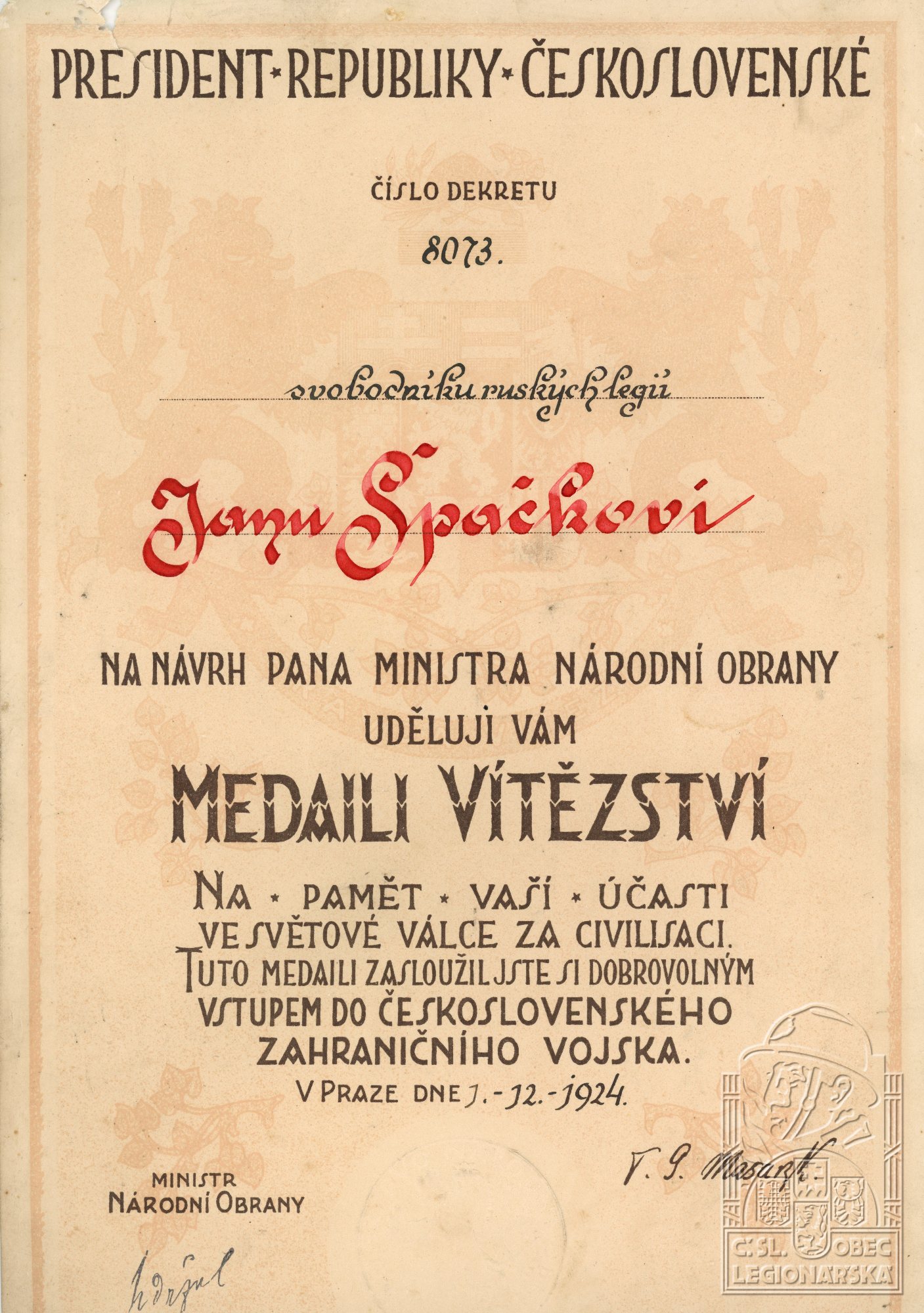 Konec v legiích:14.8.1920 ( Demobilizován )