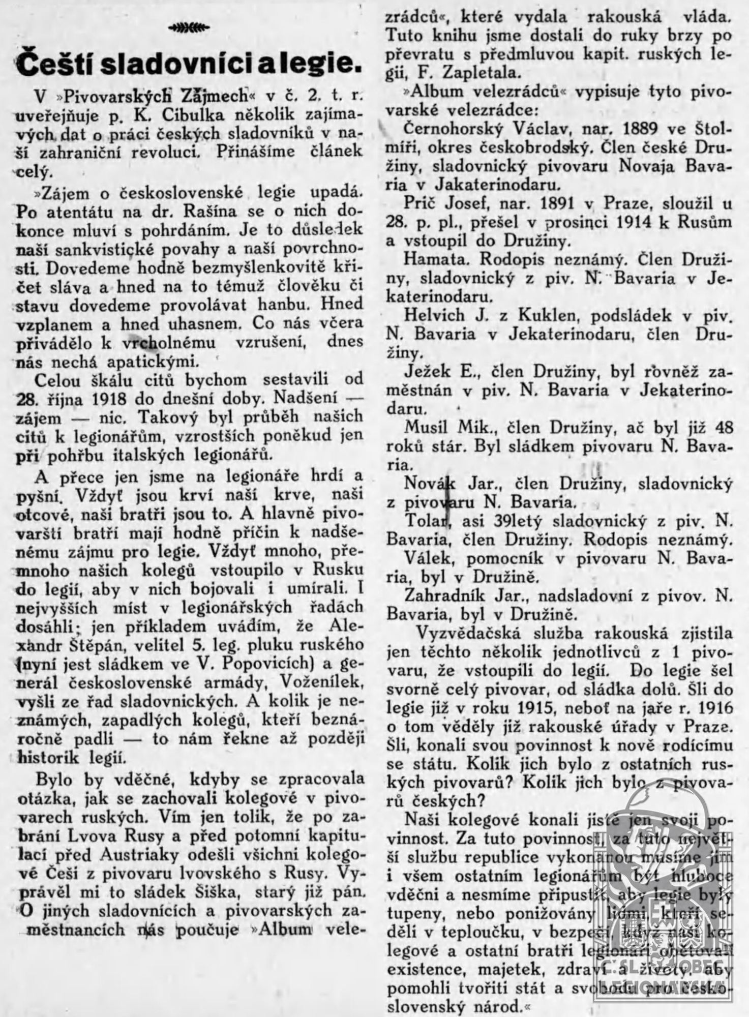 Databázi spravuje Československá obec legionářská