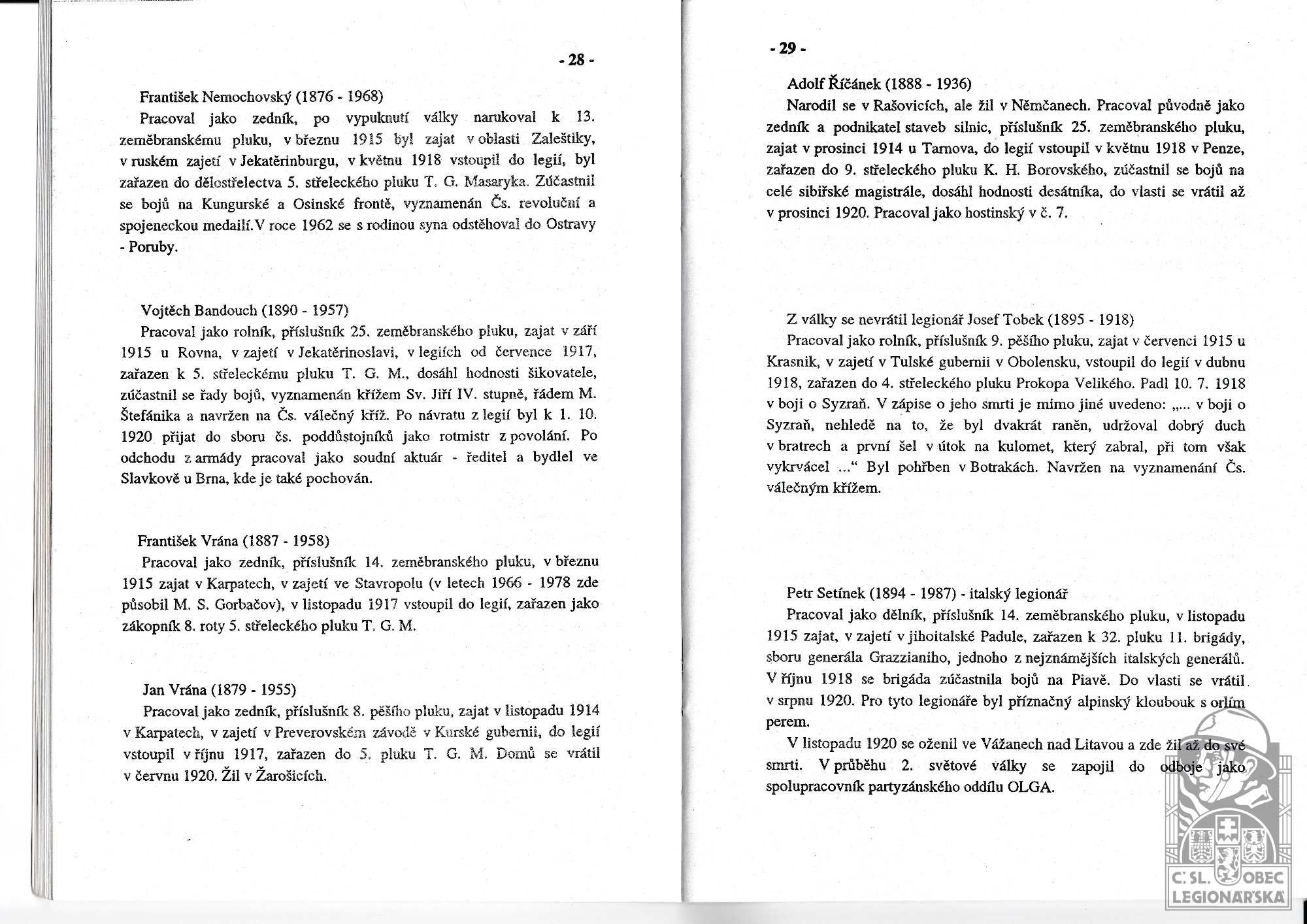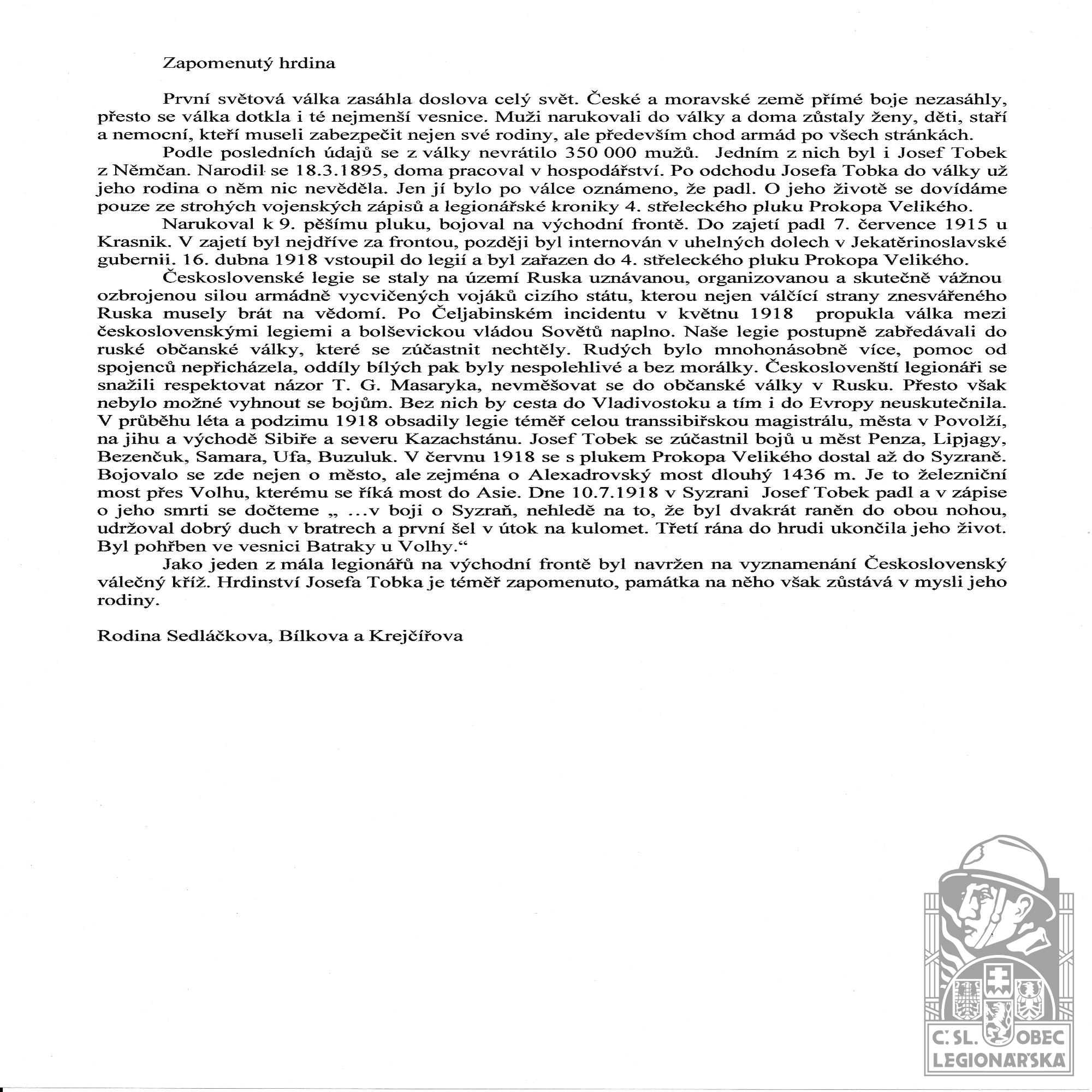Zdroj informací: legionářský poslužný spis ČÍŽEK, Petr, HUDÁK, Lukáš, CHARFREITAG, Jiří, et al. Památník padlých legionářů 4. čs. střeleckého pluku v Hradci Králové: obnova památníku a historie pluku. Praha: ČsOL, 2018.