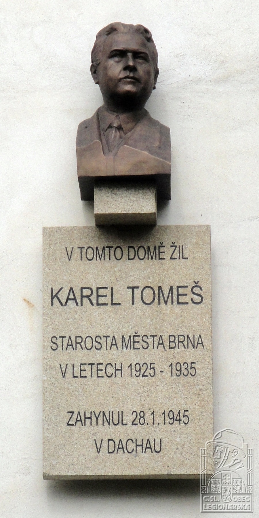 Starostu Karla Tomeše připomíná po něm pojmenovaná ulice, k pamětním deskám na Dominikánském nám.č.1 a Kounicově ulici č. 20 přibyla 1.7. 2005 pamětní deska s bustou na rodinné vile Tomešových v Tomešově ulici č. 6.
