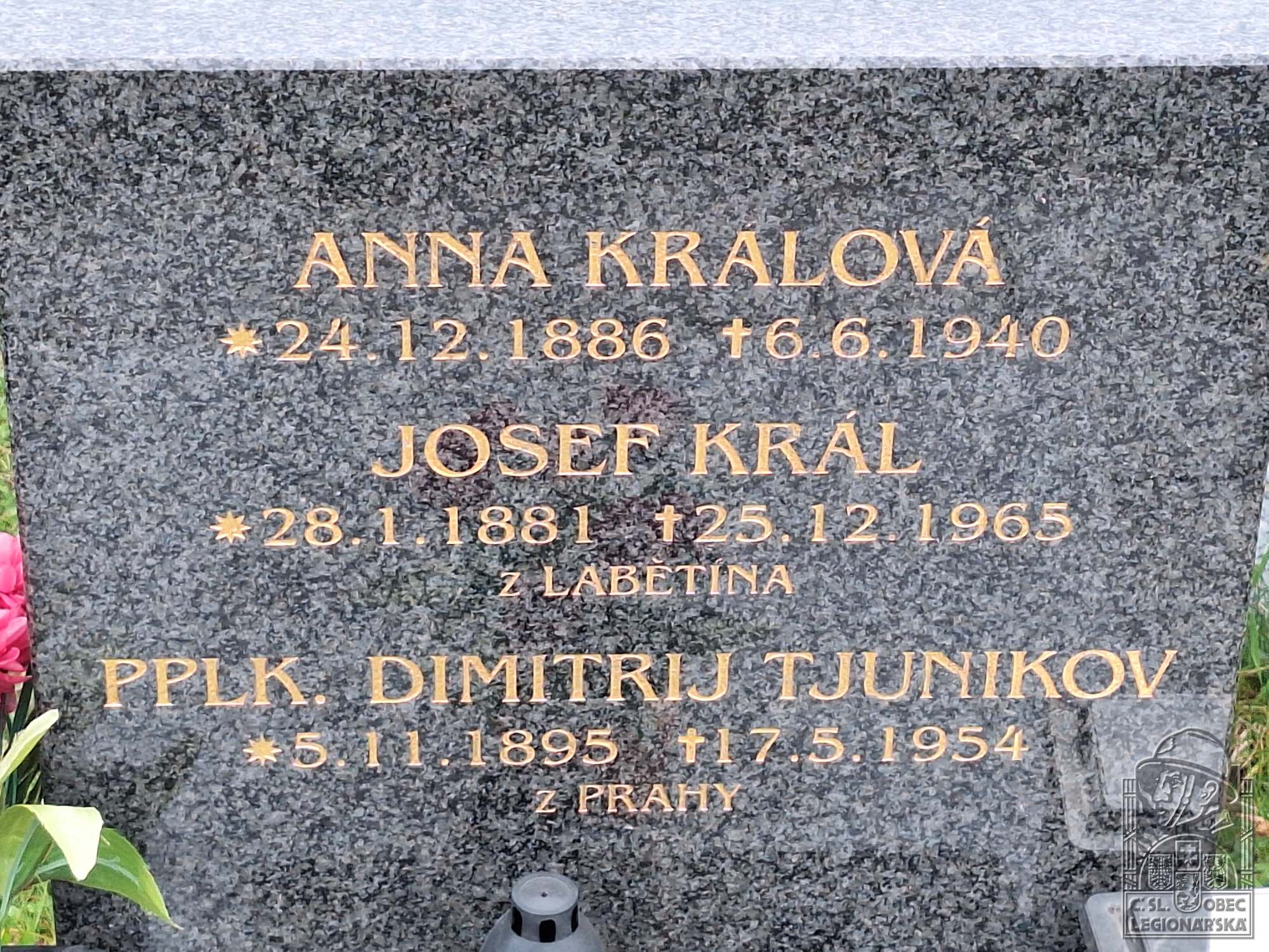 V této době neživí jen svou rodinu, ale i své dvě sestry Kláru a Ninu. Když německá vojska obsadila Ukrajinu, rozhodly se, že odejdou za svými bratry do Čech. Napsali dopis s adresou D. Tjunikov, Protektorát B.M. a ve Vozněsensku ho hodily do schránky. Sice to chvíli trvalo, ale dopis adresáta našel! (rok 1943!!) A tak se po letech všichni žijící sourozenci opět sešli. Tjunikovův starší bratr Alexandr, také bělogvardějský důstojník, se s Dimitrijem setkal v Čechách po první světové válce a již tu zůstal. Zemřel koncem padesátých let.