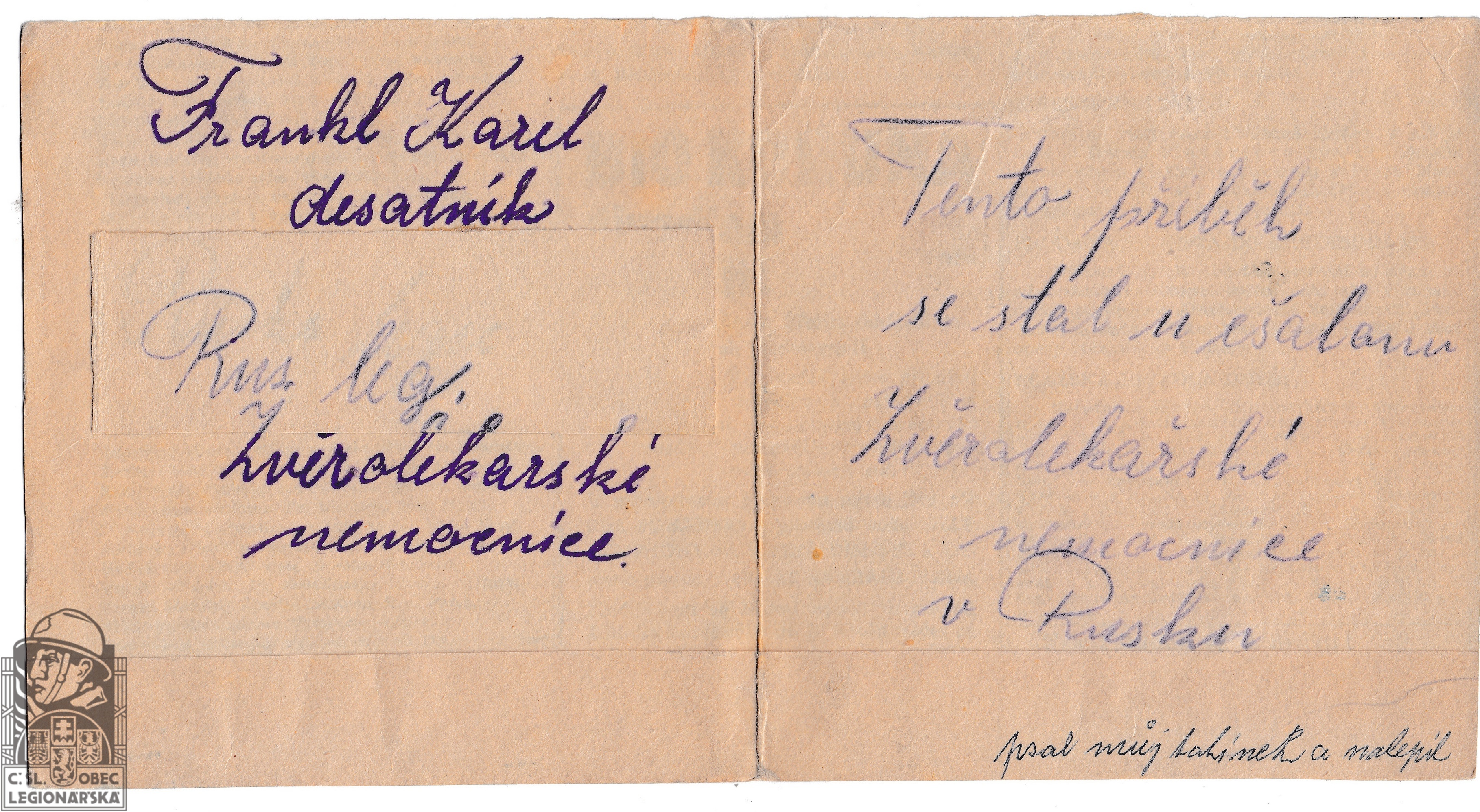 dokumenty spojené s osobou legionáře