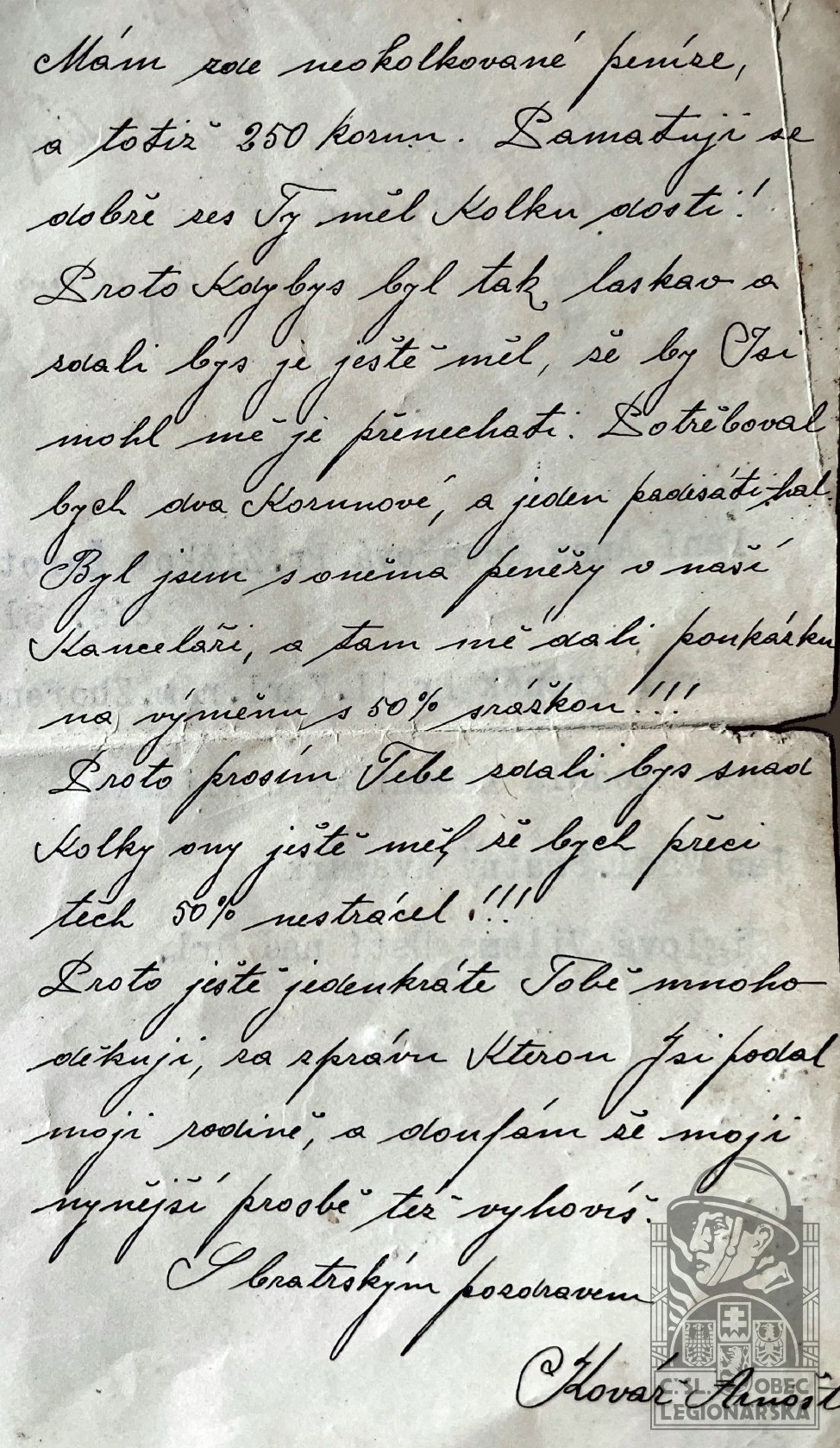 dokumenty spojené s osobou legionáře