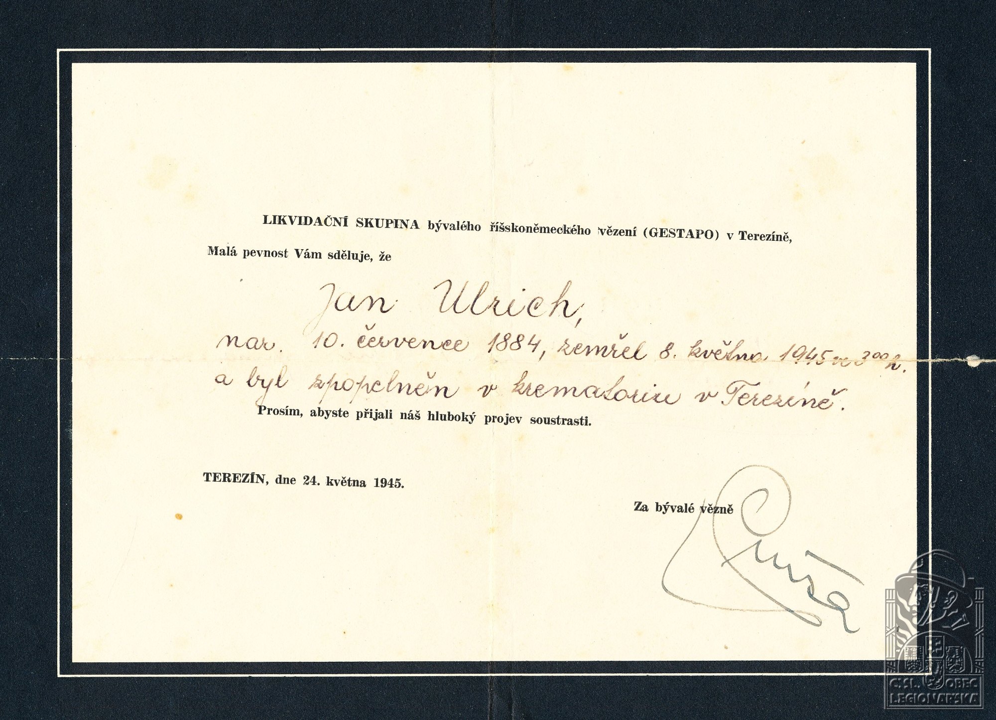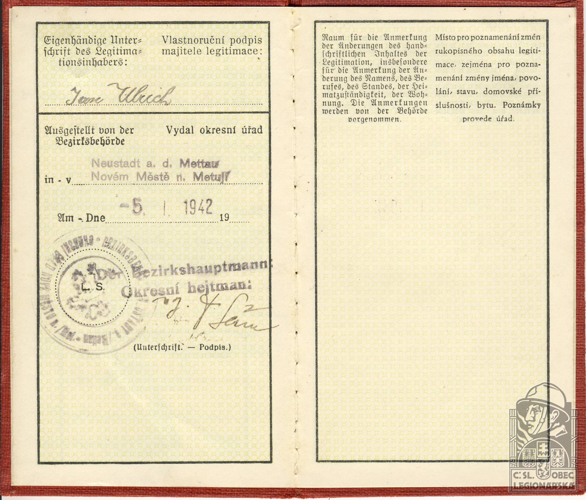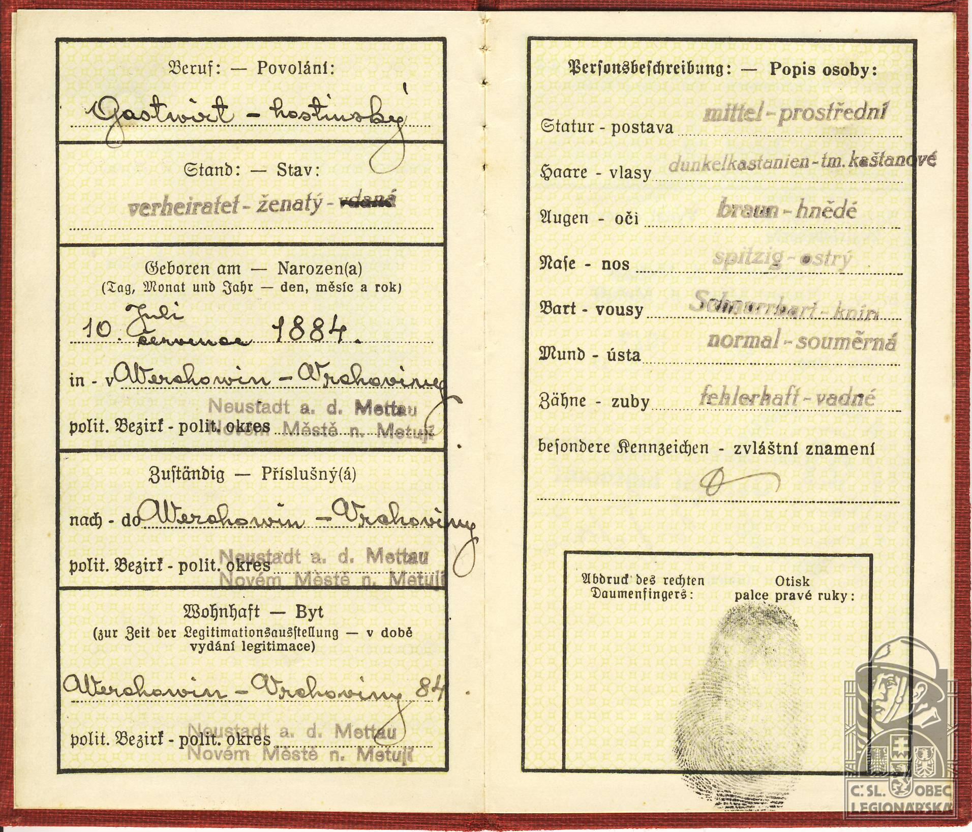 Zdroj informací: legionářský poslužný spis osobní karta legionáře