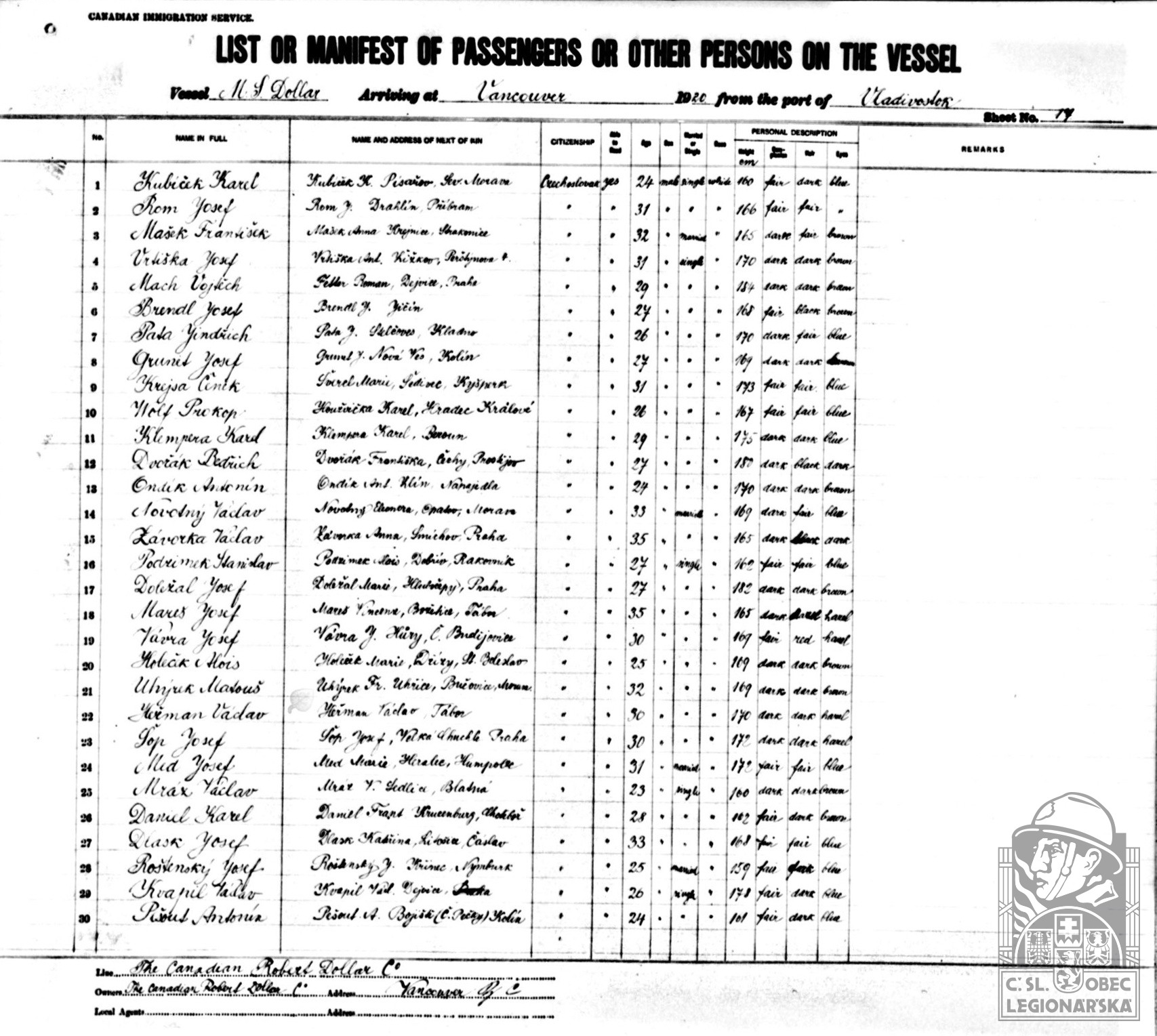 Číslo transportu do vlasti a název lodi:28. transport, loď M.S.Dollar